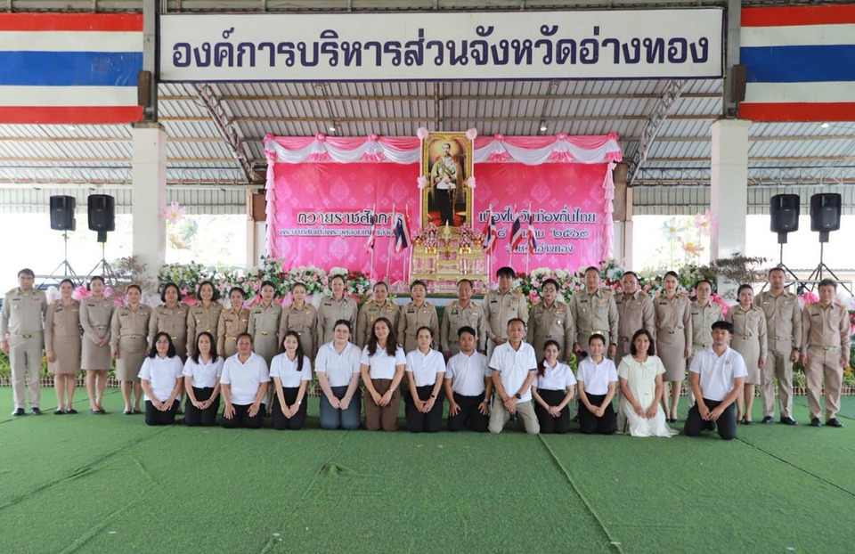 วันที่ 18 มี.ค.69 เวลา 08.30 น. ณ โดมสำนึกรักบ้านเกิด องค์การบริหารส่วนจังหวัดอ่างทอง อำเภอเมืองอ่างทองจังหวัดอ่างทอง นายนที มนตริวัต ผู้ว่าราชการจังหวัดอ่างทองมอบหมายให้ นายไพบูลย์ ศุภบุญ รองผู้ว่าราชการจังหวัดอ่างทอง เป็นประธานในพิธีถวายราชสักการะและกล่าวถวายราชสดุดี พระบาทสมเด็จพระจุลจอมเกล้าเจ้าอยู่หัว เนื่องใน“วันท้องถิ่นไทย” ประจำปี 2569 โดยมี ผู้พิพากษาหัวหน้าศาลจังหวัดอ่างทอง ผู้พิพากษาหัวหน้าศาลเยาวชนและครอบครัวจังหวัดอ่างทอง ปลัดจังหวัดอ่างทอง ท้องถิ่นจังหวัดอ่างทอง หัวหน้าส่วนราชการ นายอำเภอ นายกองค์การบริหารส่วนจังหวัดอ่างทอง นายกเทศมนตรี นายกองค์การบริหารส่วนตำบล ข้าราชการและพนักงานส่วนท้องถิ่นจังหวัดอ่างทอง เข้าร่วมพิธีถวายราชสดุดีและสำนึกในพระ มหากรุณาธิคุณ พระปิยะมหาราชเจ้า ผู้ทรงพระคุณอันประเสริฐอย่างหาสุดมิได้