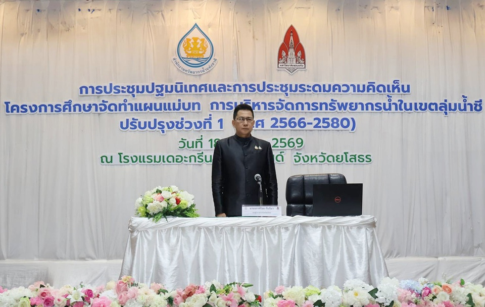 วันที่ 18 มี.ค.69 ที่โรงแรมเดอระกรีนปาร์คแกรนด์ จังหวัดยโสธร นายขรรค์ไชย ทันธิมา รองผู้ว่าราชการจังหวัดยโสธร เป็นประธานเปิดการประชุมปฐมนิเทศและการประชุมรับฟังความคิดเห็น โครงการศึกษาจัดทำแผนแม่บทการบริหารจัดการทรัพยากรน้ำในเขตลุ่มน้ำชี โดยมี นายธรรมพงศ์ เนาวบุตร ผู้อำนวยการสำนักงานทรัพยากรน้ำแห่งชาติ ภาค 3 พร้อมด้วยผู้แทนจากหน่วยงานที่เกี่ยวข้อง ภาคประชาสังคม และประชาชนในพื้นที่เข้าร่วม เพื่อร่วมกันกำหนดทิศทางแผนบริหารจัดการน้ำในอนาคตในพื้นที่