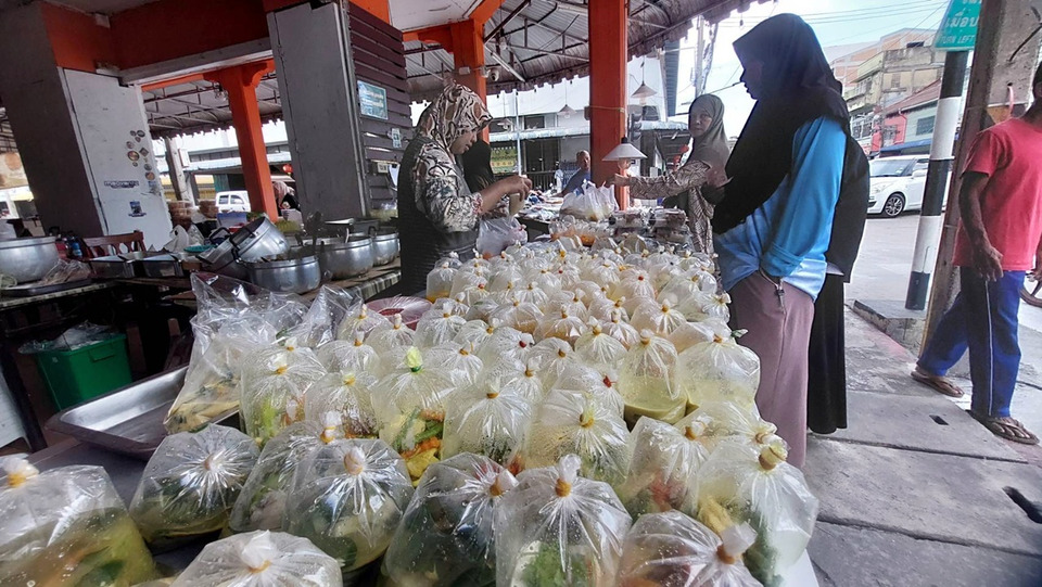 วันที่ 19 มี.ค.69 บรรยากาศร้านข้าวแกงบริเวณสี่แยกตลาดสดเทศบาลเมืองเบตง จ.ยะลา พบว่าในช่วงเย็น มีประชาชนคนไทย คนจีน และชาวมลายู รวมทั้งชาวมาเลเซีย ทยอยเดินทางมาซื้ออาหารอย่างต่อเนื่อง บางช่วงมีลูกค้าเข้าคิวรอเลือกซื้อกับข้าวกันอย่างคึกคัก โดยทางร้านจัดเตรียมเมนูไว้หลากหลาย ทั้งผัด แกง และต้มจืด ใส่ถุงวางเรียงให้เลือกจำนวนมาก ขณะที่ข้าวสวยบรรจุกล่องขนาด 10 บาท รองรับลูกค้าทุกกลุ่มอาชีพ ตั้งแต่ข้าราชการไปจนถึงผู้ใช้แรงงาน ซึ่งส่วนใหญ่เลือกซื้อกลับไปเป็นอาหารค่ำ
