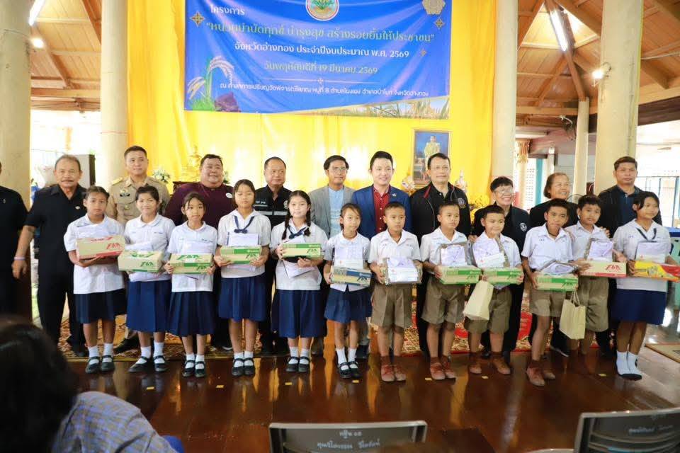 อ่างทองจัดโครงการหน่วยบำบัดทุกข์ บำรุงสุข สร้างรอยยิ้มให้ประชาชน ปี 2569 ในพื้นที่อำเภอป่าโมก บูรณาการหน่วยงานรัฐและภาคีเครือข่ายให้บริการประชาชน พร้อมมอบทุนการศึกษา ชุดอุปโภคบริโภค และช่วยเหลือผู้ด้อยโอกาส