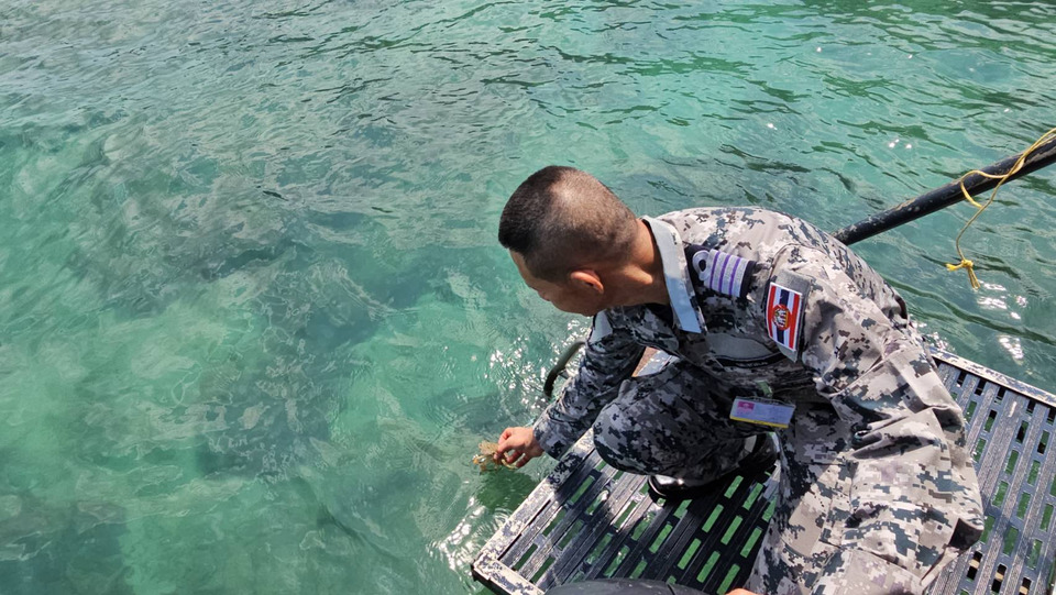 วันที่ 19 มีนาคม 2569 การไฟฟ้าฝ่ายผลิตแห่งประเทศไทย (กฟผ.) โดยโครงการปรับปรุงและขยายระบบส่งไฟฟ้าที่เสื่อมสภาพตามอายุการใช้งาน (อค-ปส.) ร่วมกับกิจการท่องเที่ยว ทัพเรือภาคที่ 1 จัดกิจกรรมฟื้นฟูสิ่งแวดล้อมทางทะเล พร้อมสนับสนุนการปรับปรุงซ่อมแซมท่าเทียบเรือและสะพานทางเดินศึกษาธรรมชาติเทิดพระเกียรติฯ รอบเกาะขาม ซึ่งมีนาวาเอก ดำรงศักดิ์ ธงตะทบ รองเสนาธิการทัพเรือภาคที่ 1 เป็นประธาน พร้อมด้วย นายจักรินทร์ กิจสุทธิพงศ์ ผู้ช่วยผู้อำนวยการโครงการปรับปรุงและขยายระบบส่งไฟฟ้าที่เสื่อมสภาพตามอายุการใช้งาน-สถานีไฟฟ้า นางนิโลบล จันทนราช วิทยากรระดับ 11 ผู้แทนฝ่ายบริหารระบบการจัดการแบบบูรณาการ และผู้ปฏิบัติงานฝ่ายก่อสร้างระบบส่ง ฝ่ายปฏิบัติการภาคกลาง ฝ่ายสื่อสารและประชาสัมพันธ์องค์การ และโครงการปรับปรุงและขยายระบบส่งไฟฟ้าที่เสื่อมสภาพตามอายุการใช้งาน รวมทั้งกำลังพลทัพเรือภาคที่ 1 หน่วยงานภาครัฐ ภาคประชาชน สื่อมวลชน ในพื้นที่อำเภอสัตหีบ เข้าร่วมกิจกรรม ณ อุทยานใต้ทะเลเกาะขาม อำเภอสัตหีบ จังหวัดชลบุรี