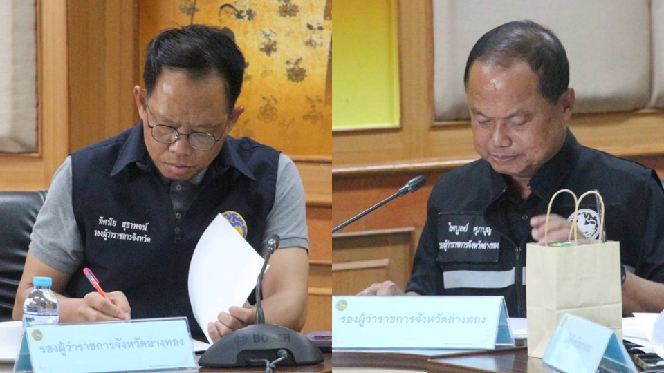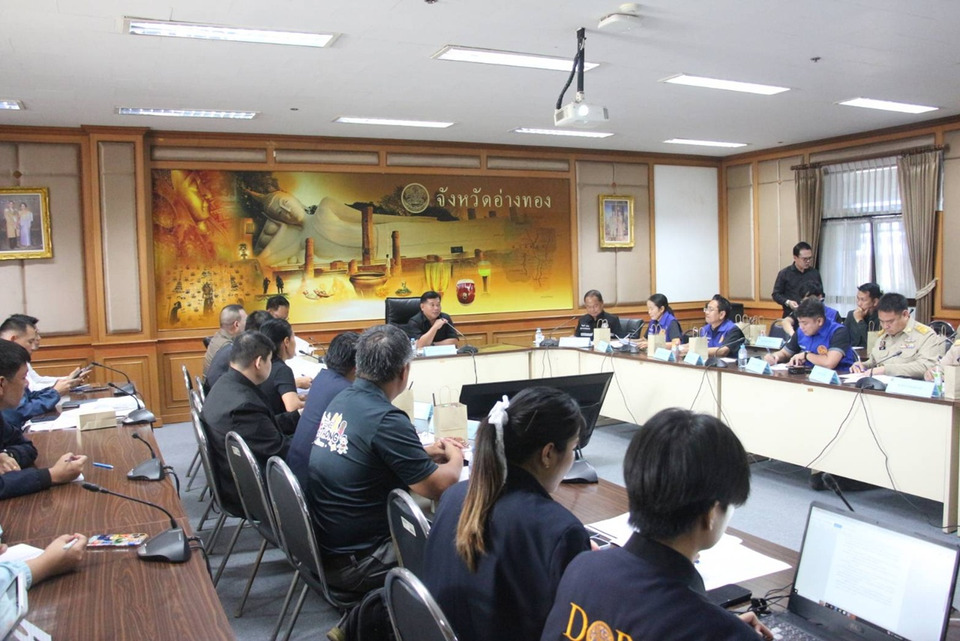 เมื่อเวลา 11.00 น. วันที่ 23 มี.ค.69 นายนที มนตริวัต ผู้ว่าราชการจังหวัดอ่างทอง เชิญส่วนราชการที่เกี่ยวข้อง อาทิ รองผู้ว่าราชการจังหวัดฯ / ตำรวภูธรจังหวัดฯ / ปลัดจังหวัดฯ / นายอำเภอ ทั้ง 7 อำเภอ / พลังงานจังหวัดฯ /พาณิชย์จังหวัดฯ และสำนักงานจังหวัดฯ ประชุมติดตามสถานการณ์น้ำมัน ที่ห้องประชุมโพธิ์ทอง ศาลากลางจังหวัดอ่างทอง