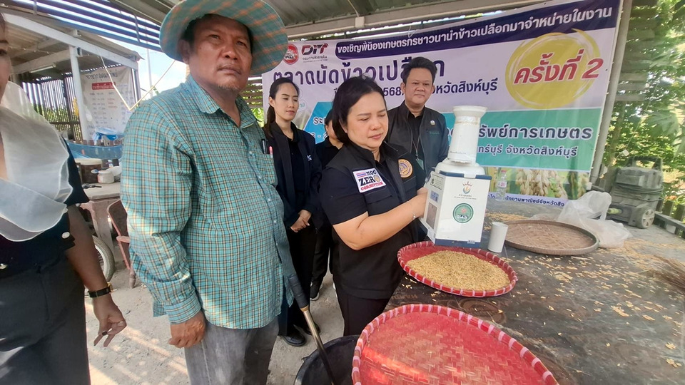 พาณิชย์สิงห์บุรีเปิดตลาดนัดข้าวเปลือก ปีการผลิต 2568/69 ครั้งที่ 2 เพิ่มช่องทางจำหน่ายและสร้างอำนาจต่อรองด้านราคาให้เกษตรกร โดยมีผู้ซื้อหลายรายเข้าร่วม เปิดโอกาสให้เกษตรกรเลือกขายและต่อรองราคาได้อย่างเป็นธรรม พร้อมรับเงินสดทันทีตามแนวทางตลาดที่โปร่งใสและได้มาตรฐาน