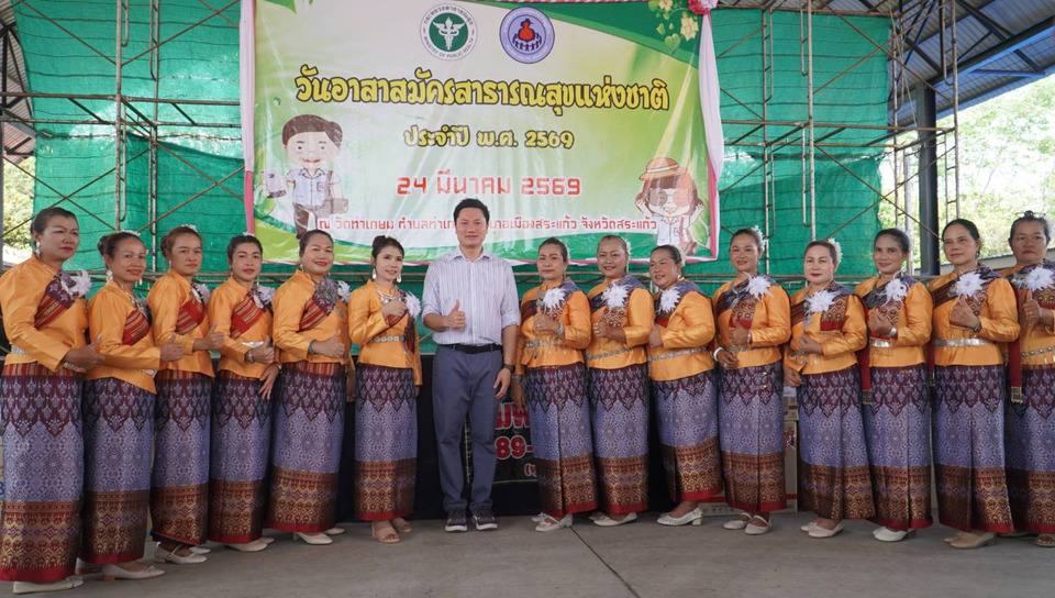 วันที่ 24 มีนาคม 2569 ณ วัดท่าเกษม ตำบลท่าเกษม อำเภอเมืองสระแก้ว จังหวัดสระแก้ว สำนักงานสาธารณสุขอำเภอเมืองสระแก้ว และชมรมอาสาสมัครสาธารณสุข ประจำหมู่บ้าน หรือ อสม.อำเภอเมืองสระแก้ว จัดกิจกรรมวันอาสาสมัครสาธารณสุข ประจำปี 2569 มีนางดารารัตน์ โห้วงศ์ รองนายแพทย์สาธารณสุขจังหวัดสระแก้ว เป็นประธานเปิดงาน มีหัวหน้าส่วนราชการ สมาชิกอสม.อำเภอเมืองสระแก้ว และเจ้าหน้าที่สาธารณสุข สังกัดสำนักงานสาธารณสุขอำเภอเมืองสระแก้ว เข้าร่วมจำนวนกว่า 1,000 คน