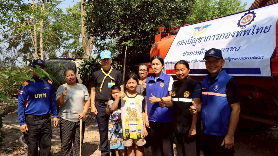 วันที่ 25 มี.ค.69 กองบัญชาการกองทัพไทย โดย ผู้บังคับหน่วยพัฒนาการเคลื่อนที่ 25 สำนักงานพัฒนาภาค 2 หน่วยบัญชาการทหารพัฒนา จิตอาสาพระราชทาน 904 นำกำลังพลชุดบรรเทาสาธารณภัยเคลื่อนที่เร็ว จำนวน 6 นาย พร้อมรถยนต์บรรทุกน้ำ ขนาด 6,000 ลิตร ออกให้ความช่วยเหลือแจกจ่ายน้ำอุปโภคบริโภค ให้กับประชาชนในพื้นที่บ้านไทยเจริญ หมู่ที่ 4 ตำบลพระพุทธบาท เพื่อบรรเทาความเดือดร้อนของพี่น้องประชาชนที่ประสบปัญหาขาดแคลนน้ำอุปโภคบริโภคในช่วงฤดูแล้ง เนื่องจากอยู่นอกเขตบริการประปาของชุมชน และแหล่งน้ำผิวดินที่ใกล้เคียงลดปริมาณลงอย่างต่อเนื่อง โดยลงพื้นที่ร่วมกับผู้นำชุมชนให้ความช่วยเหลือประชาชนอย่างเร่งด่วน