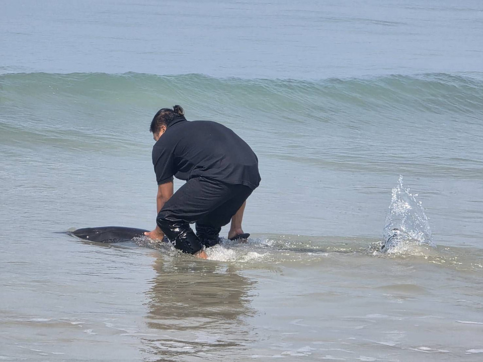 เมื่อวันที่ 25 มี.ค.69 ภาพเหตุการณ์ที่ทางนายกัมปนาท ชูศรี กำลังบันทึกภาพขณะนายเอกลักษณ์ บุญธรรม เข้าช่วยเหลือโลมาที่ถูกคลื่นซัดขึ้นมาบนฝั่งบริเวณร้านนวดบูลสกายMassage สวนห้า บ้านน้ำเค็ม ต.บางม่วง อ.ตะกั่วป่า จ.พังงา ถูกคลื่นทะเลซัดขึ้นมาเกยตื้นไม่สามารถกลับลงน้ำเองได้ เพราะมีสภาพอ่อนแรงเนื่องจากถูกคลื่นซัดมาติดหาดทราย ทันทีที่พบเห็น ทางนายเอกลักษณ์ บุญธรรม รีบเข้าตรวจสอบช่วยเหลือทันที ซึ่งการช่วยเหลือเป็นไปอย่างทุลักทุเลเนื่องจากกระแสลมแรงและคลื่นสูง แต่ด้วยความร่วมมือของทุกฝ่ายที่ช่วยกันพยุงตัวโลมาและคอยประคองให้พ้นจากจุดวิกฤต จนกระทั่งสามารถผลักดันให้โลมากลับลงสู่ท้องทะเลลึกได้อย่างปลอดภัย ท่ามกลางเสียงเชียร์และรอยยิ้มของผู้ที่อยู่ในเหตุการณ์เบื้องต้นคาดว่าโลมาตัวดังกล่าวอาจมีอาการบาดเจ็บหรืออ่อนแรงจากการพลัดหลงฝูงประกอบกับสภาพอากาศแปรปรวน