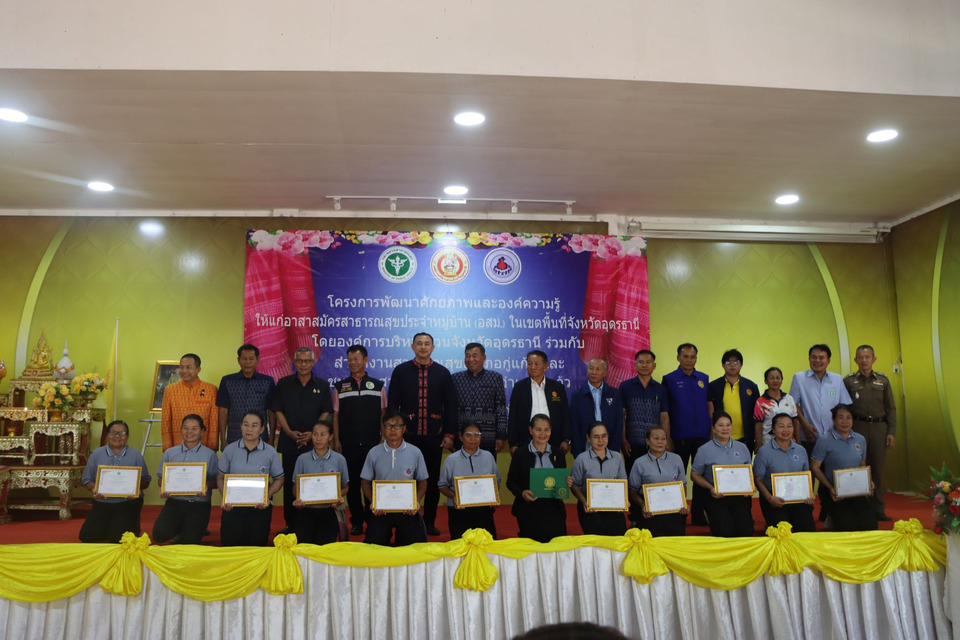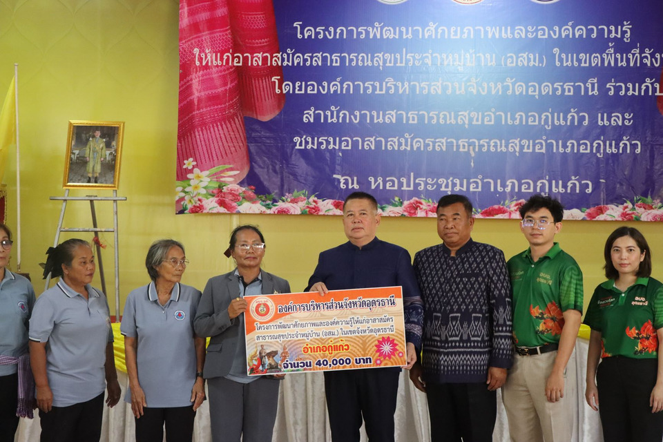 วันที่ 26 มี.ค.2569 เวลา 09.00 น.เป็นต้นไป นายศราวุธ เพชรพนมพร นายก อบจ.อุดรธานี มอบหมายให้ นายสมัคร บุญปก รองนายก อบจ.อุดรธานี ลงพื้นที่พบปะประชาชนผู้เข้าร่วมในโครงการพัฒนาศักยภาพและองค์ความรู้ให้แก่อาสาสมัครสาธารณสุขประจำหมู่บ้าน(อสม.)ในเขตพื้นที่ จ.อุดรธานี ณ หอประชุมที่ว่าการ อ.กู่แก้ว จ.อุดรธานี โดยมี นายธาตรี ศรีนนท์ ปลัดอำเภอหัวหน้ากลุ่มงานบริหารงานปกครอง แทน นอ.กู่แก้ว เป็นประธานกล่าวเปิดงาน ร.ต.ต.บรรจง จันทะแจ่ม ส.อบจ.อุดรธานี เขต อ.กู่แก้ว นางมลิวัลย์ แหล้มี ประธานชมรมอาสาสมัครสาธารณสุข อ.กู่แก้ว (กล่าวรายงาน) ผอ.รพ.กู่แก้ว ผอ.รพ.สต.ทุกแห่ง หัวหน้าส่วนราชการ ผู้นำท้องที่ ผู้นำท้องถิ่น และ อาสาสมัครสาธาธารณสุขจากรพ.สต. โรงพยาบาลกู่แก้ว และภาคีเครือข่ายเข้าร่วม