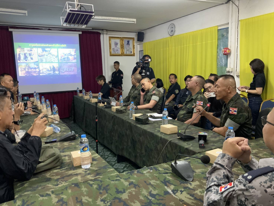 หลังแนะนำตัวและภารกิจของการเดินทางมาครั้งนี้แล้ว น.อ.ธรรมนูญ ได้นำภาพวีทีอาร์สรุปการสู้รบระหว่างกำลังทหารทั้งสองฝ่าย โดยเฉพาะ การสู้รบระหว่างวันที่ 9-14 ธันวาคม 2569 ซึ่งวันแรกที่มีการสู้รบกันนั้น เป็นการเปิดการสู้รบที่ดุเดือด และหน่วยเฉพาะกิจนาวิกโยธินตราด และหน่วยขึ้นตรงได้นำทหารเข้าพื้นที่สู้รบในพื้นที่บ้าน 3 หลัง ซึ่งเป็นพื้นที่เป้าหมายที่ทางฝ่ายเราต้องการยึดกลับคืนมา แต่การเข้าไปกลับได้รับการตอบโต้กลับมาอย่างรุนแรง
