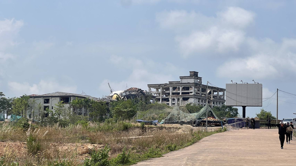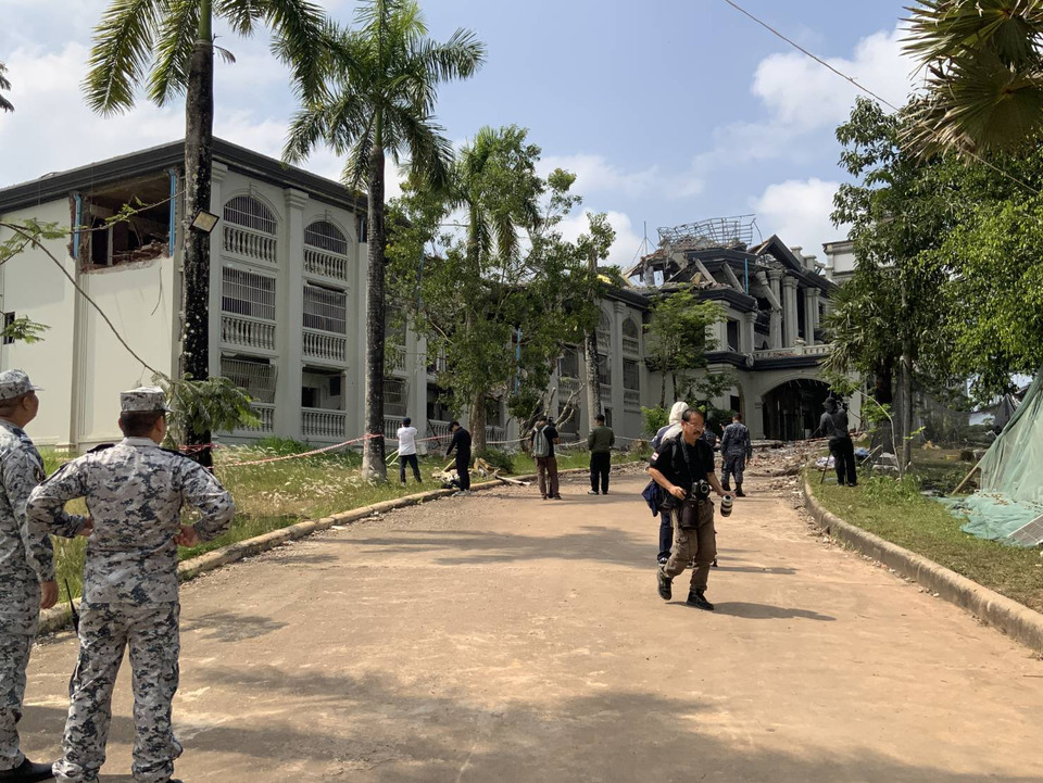 จากนั้น คณะของเลขานุการ กองทัพเรือ และสื่อมวลชนเดินทางไปยังบ้านทมอดา ต.เวียงเวล อ.เวียงเวล จ.โพธิสัต เพื่อดูสภาพพื้นที่สู้รบในพื้นที่ซึ่งจุดแรกพาไปที่บริเวณอาคารกาสิโนที่ถูกเอฟ-16 ทิ้งระเบิดจนได้รับความเสียหายทั้ง 2 อาคารและใช้งานไม่ได้ โดยได้ชี้ให้เห็นถึงสภาพปัญหาต่างๆในพื้นที่ และอีกจุดหนึ่ง คือ บริเวณที่ตั้งแนวตู้คอนเทรนเนอร์ไว้ที่มีกัน จอมพลังรอรับคณะอยู่และได้พูดคุยและอธิบายถึงสถานการณ์ให้เลขานุการกองทัพเรือได้รับทราบ และน.อ.ธรรมนูญ วรรณา ยังได้นำคณะสื่อมวลชนขึ้นไปชมบังเกอร์ที่ตั้งอยู่บนตู้คอนเทรนเนอร์ปิดกันช่องทางเข้ามายังฝั่งไทย ระหว่างนั้น มีทหารกัมพูชาที่ตั้งฐานอยู่ได้เดินเข้ามาตรวจสถานการณ์และใช้โทรศัพท์มือถือถ่ายภาพไว้ และพูดคุยกับผบ.ฉก.นย.ตราดอย่างเป็นกันเอง