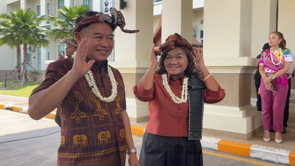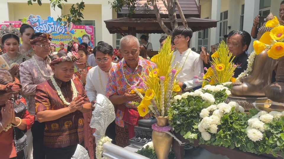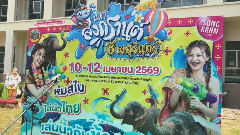 วันที่ 26 มีนาคม 2569 เวลา 11.30 น. ที่ศูนย์ราชการจังหวัดสุรินทร์ นายจำเริญ แหวนเพ็ชร ผู้ว่าราชการจังหวัดสุรินทร์ พร้อมด้วยนางชไมพร แหวนเพ็ชร ผู้ว่าราชการจังหวัดสุรินทร์ รองผู้ว่าราชการจังหวัดสุรินทร์ และหัวหน้าส่วนราชการ แต่งชุดผ้าไหมพื้นเมืองสุรินทร์ พร้อมนำผ้าไหมมาพันม้วนมัดเป็นรูปหัวช้างมีงวงสวมเป็นมงกุฎ ฟ้อนรำร่วมกับขบวนศิลปวัฒนธรรม(รำตรด )อย่างสนุกสนาน ร่วมกิจกรรมเชิญชวนเที่ยวงานมหาสงกรานต์ช้างสุรินทร์ 2569 สืบสานวัฒนธรรมท้องถิ่นและเอกลักษณ์ “วิถีช้างคืนถิ่น” เนื่องในวันช้างไทย โดยมีกำหนดจัดขึ้นระหว่างวันที่ 10-12 เมษายน 2569 ณ สวนเฉลิมพระเกียรติฯ จังหวัดสุรินทร์ นักท่องเที่ยวจะได้รวมเล่นน้ำกับช้าง และสัมผัสใกล้ชิดกับช้างอย่างปลอดภัย พร้อมความบันเทิงครบครัน ทั้งโฟมปาร์ตี้ การแสดงดนตรีจากดีเจ ถนนสายน้ำที่สร้างความชุ่มฉ่ำตลอดเส้นทาง