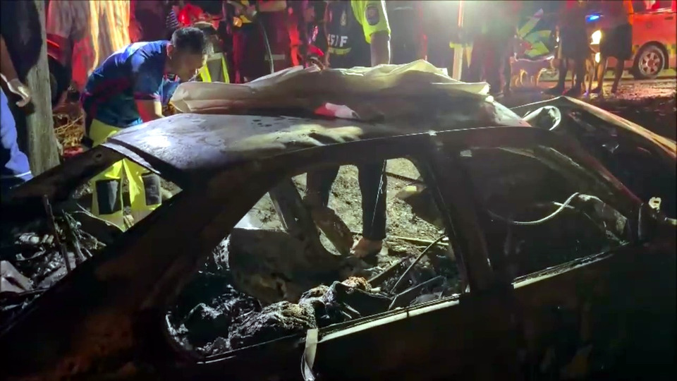 เมื่อวันที่ 26 มี.ค.69 เวลา 22.00 น. พ.ต.ท.สำเนียง ศรีพรหม สว.(สอบสวน) สภ.หนองหาน รับแจ้งมีอุบัติเหตุรถเก๋งชนต้นไม้และเกิดไฟไหม้รถยนต์มีคนเสียชีวิตติดภายในรถ เหตุเกิดถนน อ.หนองหาน-บ้านพังงู แยกเข้าไปทางบ้านเรืองชัย หมู่ 7 ต.พังงู อ.หนองหาน จ.อุดรธานีประมาณ 300 เมตร หลังรับแจ้งจึงรุดไปยังที่เกิดเหตุพร้อมด้วยกู้ภัยส่งเสริมธรรม จุดบริการหนองหาน,รถดับเพลิงของอบต.พังงู,อบต.หนองไผ่,กู้ชีพ รพ.หนองหาน เมื่อไปถึงพบรถเก๋งยี่ห้อ BMW ทะเบียน ไม่ทราบสีเนื่องจากถูกไฟไหม้ทั้งคัน และที่น่าสลดใจบริเวณเบาะที่นั่งข้างคนขับ พบศพคนเสียชีวิตคาดว่าจะเป็นเพศชาย ถูกย่างสดสภาพดำเป็นตอตะโก เจ้าหน้าที่กู้ภัยได้ใช้เครื่องตัดถ่างงัดร่างของผู้เสียชีวิตออกมา ยังไม่ระบุเพศได้เนื่องถูกไฟไหม้ย่างสดจนดำเป็นตอตะโก