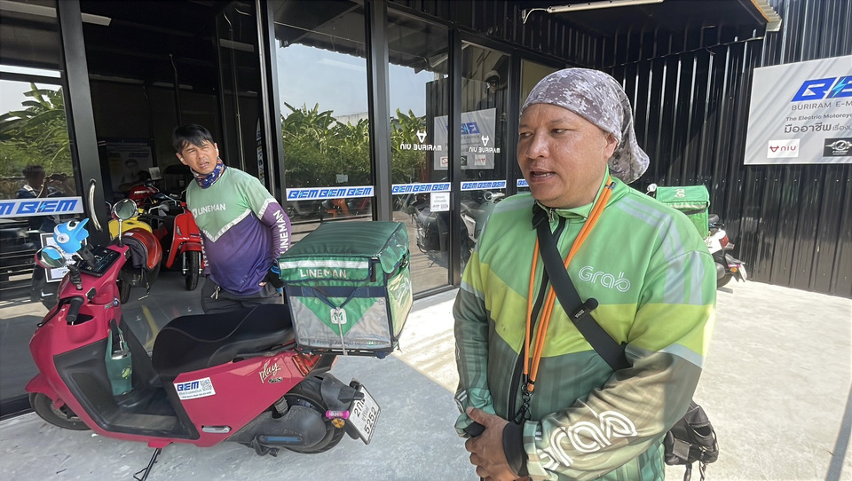 นายธีรพงษ์ ท่าทราย อายุ 52 ปี อาชีพไรเดอร์ เปิดเผยว่า สาเหตุที่ตัดสินใจเปลี่ยนมาเช่ารถจักรยานยนต์ไฟฟ้า เพราะช่วยลดต้นทุนได้อย่างชัดเจน โดยเฉพาะในช่วงที่ราคาน้ำมันพุ่งสูง โดยตนเป็นหนึ่งในลูกค้าชุดแรกที่ได้รับโปรโมชั่นเช่าในอัตราพิเศษวันละ 125 บาท (สำหรับ 10 คันแรก) จากปกติ 145 บาทต่อวัน ซึ่งเมื่อเทียบกับรายได้จากการวิ่งงานวันละประมาณ 800 –1,000 บาท หลังหักค่าเช่าแล้ว ยังเหลือเพียงพอต่อค่าใช้จ่ายและมีเงินเก็บ อีกทั้งยังไม่ต้องกังวลเรื่องค่าซ่อมบำรุง เพราะทางร้านมีบริการดูแลและชาร์จไฟให้ฟรี ถือว่าตอบโจทย์ในภาวะเศรษฐกิจในปัจจุบันได้อย่างดี