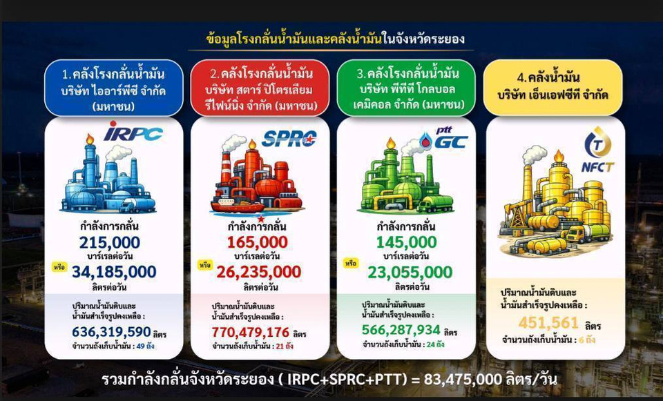 เมื่อเวลา 10.00 น. วันที่ 27 มี.ค.ที่ห้องประชุมภักดีศรีสงคราม ชั้น 4 ศาลากลางจังหวัดระยอง ต.เนินพระ อ.เมือง จ.ระยอง ผู้สื่อข่าวรายงานว่า นายไตรภพ วงศ์ไตรรัตน์ ผู้ว่าราชการจังหวัดระยอง เรียกประชุมส่วนราชการที่เกี่ยวข้อง และผู้ประกอบการโรงกลั่นน้ำมันในพื้นที่ 3 แห่ง ประกอบด้วย บริษัท ไออาร์พีซี จำกัด(มหาชน), บริษัท พีทีที โกลบอลเคมิคอล จำกัด(มหาชน) ,บริษัท สตาร์ ปิโตรเลียม รีไฟน์นิ่ง จำกัด(มหาชน) และผู้แทนบริษัทค้าปลีกน้ำมันในพื้นที่ มี พล.ต.ต.เสถียร บุญค้ำ รอง ผบช.ภ.2 ร่วมประชุมด้วย ทั้งนี้เพื่อติดตาม รองรับสถานการณ์ด้านพลังงานในจังหวัดระยอง หลังราคาน้ำมันพุ่งสูงขึ้น ขาดแคลน และหวั่นมีการกักตุน รวมทั้งติดตามผลกระทบกับภาคส่วนต่างๆ จากเหตุราคาน้ำมันพุ่งสูงขึ้นดังกล่าว