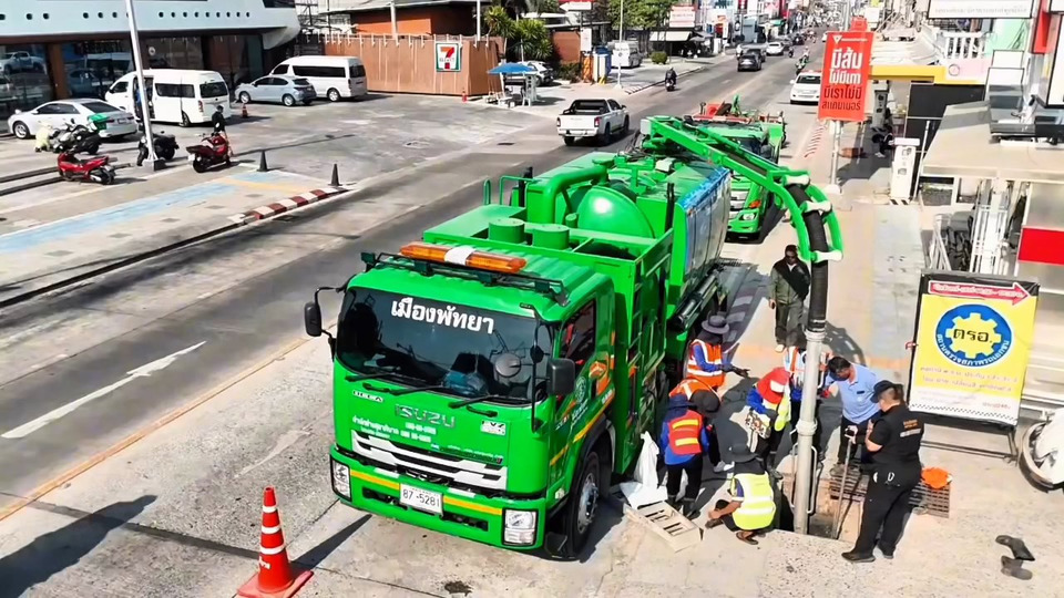 ด้านนายณัฐพงศ์ แสนทวีสุข ผอ.ส่วนจัดการระบบป้องกันและระบายน้ำ รักษาราชการแทนผู้อำนวยการสำนักช่างสุขาภิบาล ชี้แจงว่า ปัจจุบันได้ดำเนินการลอกท่อระบายน้ำในเส้นทางสายหลัก อาทิ ถนนสุขุมวิท ถนนพัทยากลาง ถนนพัทยาใต้ ถนนนาเกลือ และถนนพัทยาสาย 2 ควบคู่กับการแก้ไขจุดเสี่ยงในพื้นที่รอง เช่น ซอยเพนียดช้าง ซอยกอไผ่ และซอยเอ็นจอย ซึ่งเป็นพื้นที่ที่เกิดน้ำท่วมซ้ำซาก อีกทั้งยังได้กำหนดจุดยุทธศาสตร์สำคัญในการเร่งระบายน้ำ เช่น ถนนพัทยาสาย 3 ช่วงแยกพัทยาใต้ถึงแยกจัมโบ้ ถนนสุขุมวิทบริเวณปากซอย 18 และ 33 ถนนพัทยาสาย 2 ตั้งแต่วัดชัยมงคลถึงสถานีสูบน้ำ PS5 และถนนเลียบทางรถไฟบริเวณซอยวัดธรรมสามัคคี ในด้านเครื่องจักรและกำลังพล มีการจัดเตรียมรถดูดโคลนขนาด 6 ล้อ จำนวน 2 คัน และ 10 ล้อ จำนวน 2 คัน เพื่อดูดตะกอนและสิ่งอุดตันในท่อ โดยนำไปกำจัดที่บ่อบำบัดน้ำเสียหนองใหญ่ อีกทั้งยังมีการซ่อมบำรุงรถ JCB รถแบคโฮ รวมถึงระบบปั๊มน้ำและประตูระบายน้ำ ให้พร้อมใช้งานตลอดช่วงฤดูฝน