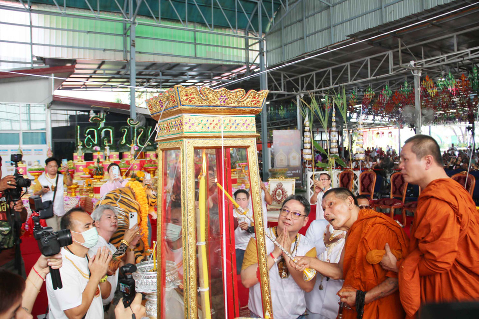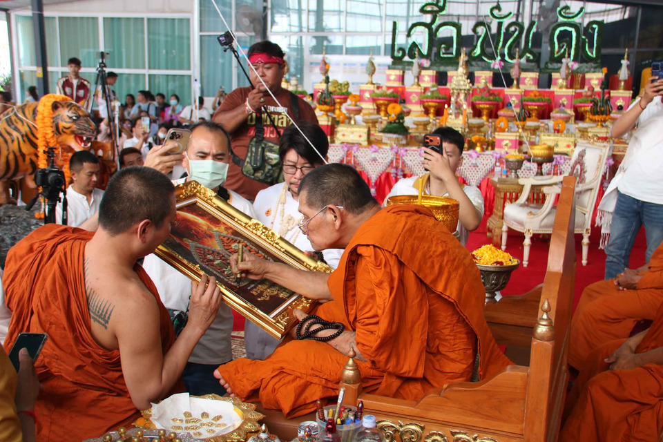 โดยหลังจากพระครูสังฆรักษ์เธียรชัย ดับเทียนตามปกติแล้ว พอหันหลังกลับเทียนชัยที่ดับลง ก็ได้เกิดมีเปลวไฟลุกโชนขึ้นอีก ทำให้ผู้เข้าร่วมพิธีที่มองเห็นส่งเสียงฮือฮาด้วยความแปลกประหลาดใจ จากนั้นพระครูสังฆรักษ์ฯ จึงได้น้อมกราบขออนุญาตหลวงปู่ศิลา เพื่อทำพิธีดับเทียนชัยอีกครั้ง จึงสามารถดับเทียนชัยให้มอดดับลงได้ หลายคนจึงมีความเชื่อว่าเป็นเพราะพุทธคุณของวัตถุมงคล “พระขุนแผนหลังเสือ” ที่หมายถึงการมีพลังอำนาจ บารมี ย่อมบังเกิดความเป็นสิริมงคลแก่ผู้บูชา คาดว่าจะเป็นวัตถุมงคลมาแรงสุดๆอีกรุ่นหนึ่ง ตามที่หลวงปู่ศิลาเคยตั้งชื่อให้อีกชื่อหนึ่ง ก่อนที่จะเมตตานั่งปรกปลุกเสกในวันนี้ว่า “เสือมันดัง”