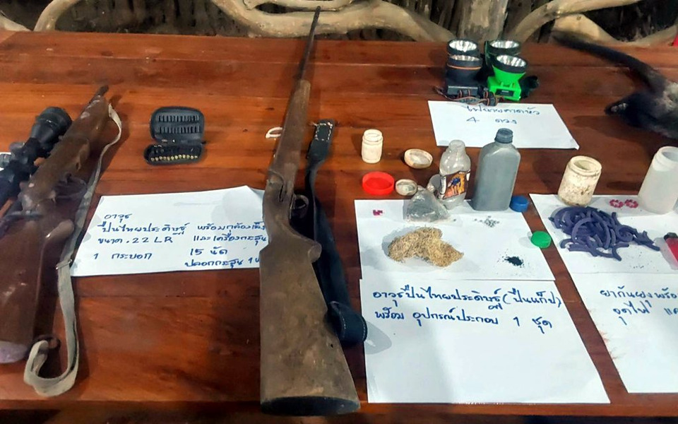 เจ้าหน้าที่บุกจับ 2 พรานป่าในเขตรักษาพันธุ์สัตว์ป่าแม่ตื่น จ.ตาก พร้อมของกลางปืนและซากสัตว์ป่า ส่อโยงสาเหตุเผาป่าหวังล่าสัตว์ เร่งดำเนินคดีตามกฎหมาย