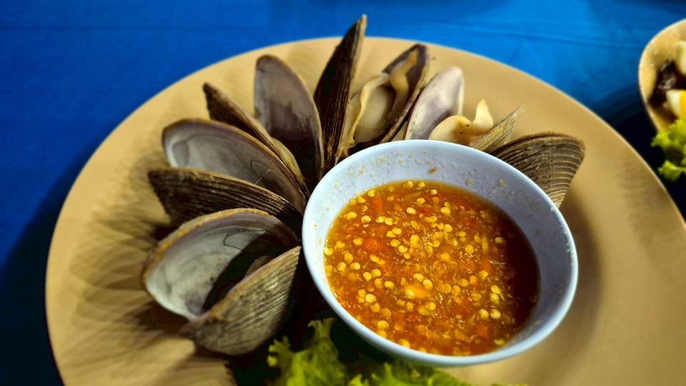 ภายในงาน เหล่าแขกผู้มีเกียรติและนักท่องเที่ยวได้ร่วมรับประทานอาหารซีฟู้ดรสเด็ด โดยเน้นเมนูจากหอยท้ายเภาสด ๆ จากทะเลบ้านบ่อเจ็ดลูก พร้อมชมการแสดงสินค้าชุมชนที่แสดงถึงความเข้มแข็งของคนในพื้นที่