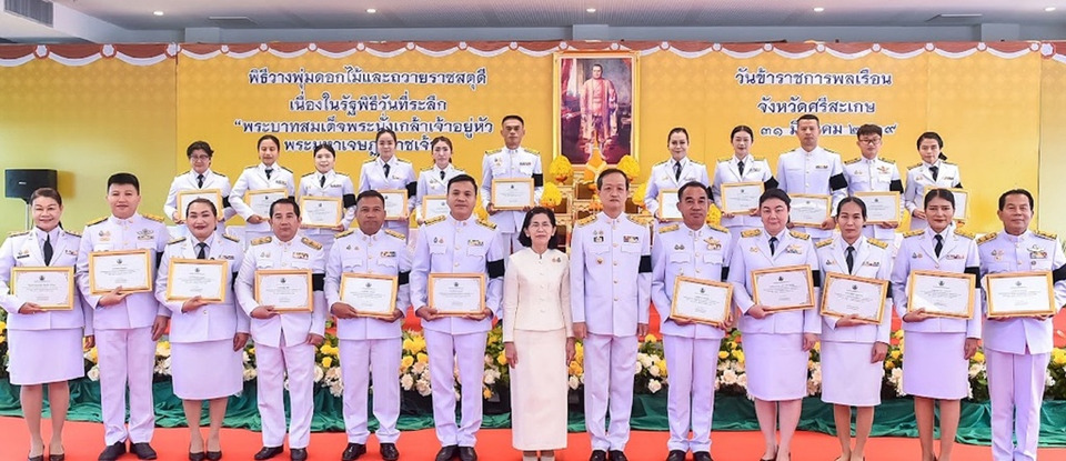 ผู้ว่าฯ ศรีสะเกษ ร่วมพิธีวางพุ่มดอกไม้ถวายราชสดุดี เนื่องในวันที่ระลึกพระบาทสมเด็จพระนั่งเกล้าเจ้าอยู่หัว พร้อมมอบเกียรติบัตรให้ข้าราชการพลเรือนดีเด่น