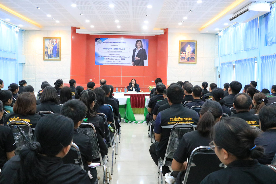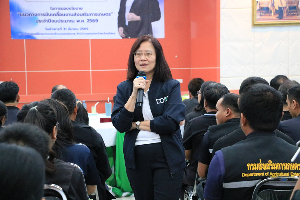 วันที่ 31 มีนาคม 2569 เวลา 13.00 น. นางอัญชลี สุวจิตตานนท์ อธิบดีกรมส่งเสริมการเกษตร ลงพื้นที่ปฏิบัติราชการในพื้นที่จังหวัดยโสธร เพื่อมอบนโยบายและแนวทางการขับเคลื่อนงานส่งเสริมการเกษตร ประจำปีงบประมาณ พ.ศ. 2569 ณ อาคารศูนย์ฝึกอบรมและพัฒนาเกษตรกร สำนักงานเกษตรจังหวัดยโสธร ในการนี้ นายนพดล ผุดผ่อง เกษตรจังหวัดยโสธร พร้อมด้วยหัวหน้ากลุ่ม/ฝ่าย เกษตรอำเภอ เจ้าหน้าที่สำนักงานเกษตรจังหวัด และสำนักงานเกษตรอำเภอทั้ง 9 อำเภอ เข้าร่วมรับมอบนโยบายและรับฟังแนวทางการดำเนินงานอย่างพร้อมเพรียง