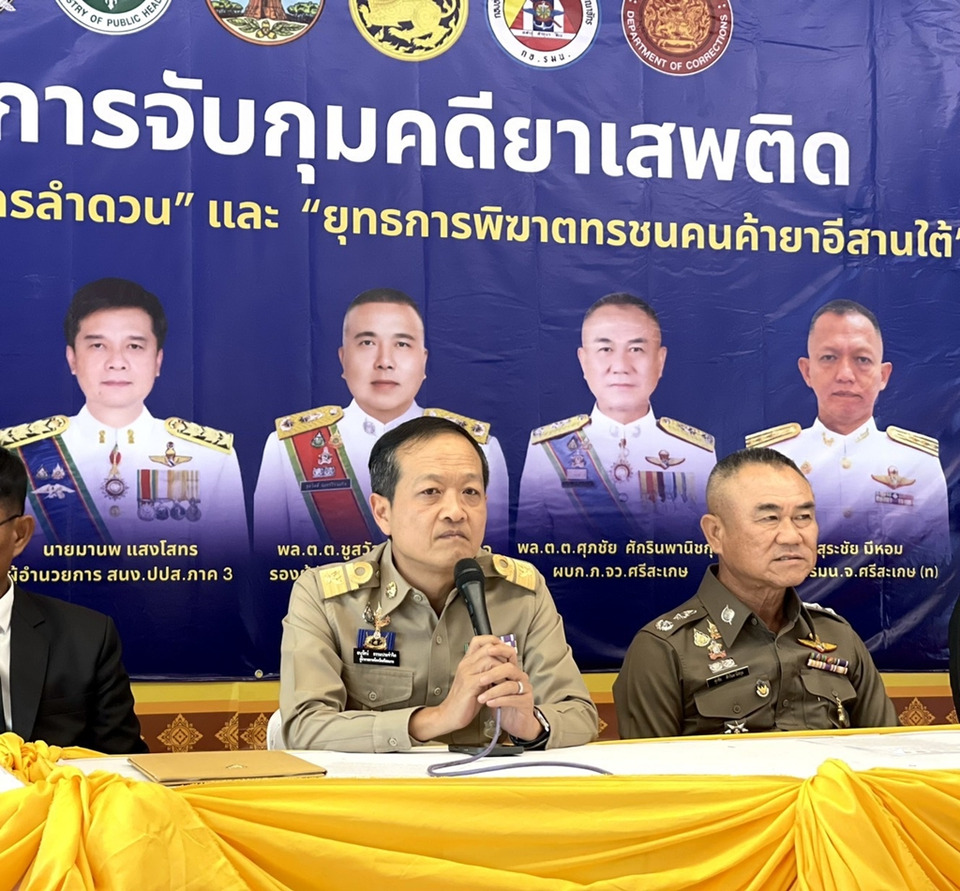 วันที่ 1 เม.ย.69 เวลา 13.00 น. ห้องประชุมชั้น5 ศาลากลางศรีสะเกษ นายอนุรัตน์ ธรรมประจำจิต ผู้ว่าราชการจังหวัดศรีสะเกษ พร้อมด้วย พล.ต.ต.ศุภชัย ศักรินพานิชกุล ผู้บังคับการตำรวจภูธรจังหวัดศรีสะเกษ ร่วมแถลงผลการจับกุมเครือข่ายคดียาเสพติด ตามยุทธการ “238 พิทักษ์นครลำดวน” และ “พิฆาตทรชนคนค้ายาอีสานใต้ ภ.3” ห้วงวันที่ 1 ตุลาคม 2568 - 31 มีนาคม 2569 โดยมี นายสุริยา บุตรจินดา รองผู้ว่าราชการจังหวัดศรีสะเกษ รองผู้อำนวยการรักษาความมั่นคง ภายในจังหวัดศรีสะเกษ (ฝ่ายทหาร) ปลัดจังหวัด ผู้บัญชาการเรือนจำจังหวัด นายอำเภอ ผู้แทน สนง. ปปส.ภาค 3 รองนายแพทย์สาธารณสุขจังหวัด ตำรวจภูธรจังหวัดศรีสะเกษ ประชาสัมพันธ์จังหวัด เจ้าหน้าที่ฝ่ายปกครอง พร้อมด้วยหน่วยงานที่เกี่ยวข้องร่วมแถลงผลการดำเนินการในครั้งนี้