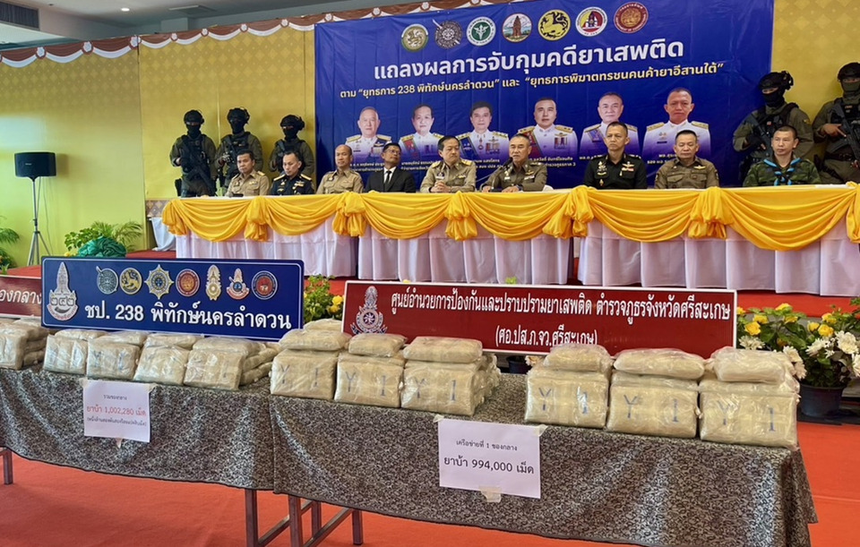 ผลการปฏิบัติการ "238 พิทักษ์นครลำดวน" จับกุมผู้ต้องหาคดียาเสพติด 2,974 คน ยึดยาบ้า 1.8 ล้านเม็ด พร้อมทรัพย์สินนักค้ายา มูลค่ากว่า 44 ล้านบาท ขยายผลเครือข่ายและร่วมมือประชาชนแจ้งเบาะแส