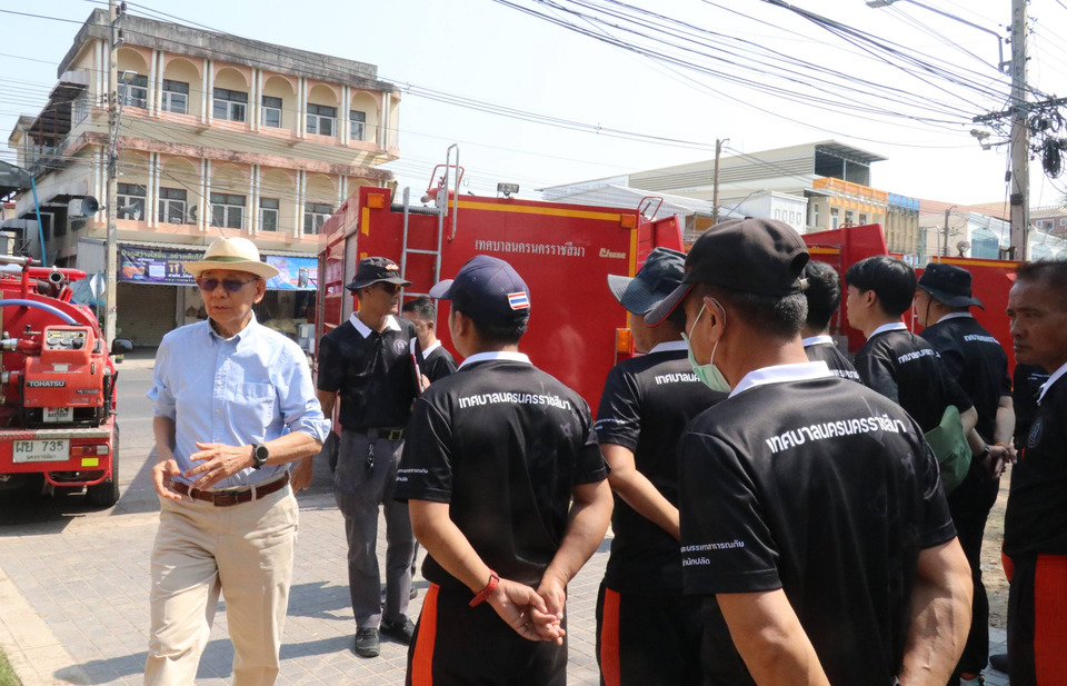 เมื่อวันที่ 2 เมษายน ที่สวนภูมิรักษ์ 2 เขตเทศบาลนคร (ทน.) นครราชสีมา นายแพทย์วรรณรัตน์ ชาญนุกูล นายก ทน.นครราชสีมา พร้อมหัวหน้าส่วนราชการที่เกี่ยวข้องตรวจความพร้อมรถดับเพลิงและรถบรรทุกน้ำของงานป้องกันและบรรเทาสาธารณภัย รวมทั้งเจ้าหน้าที่และบุคลากรของ ทน.นครราชสีมา เพื่อเตรียมบรรเทาปัญหากรณีหยุดจ่ายน้ำประปาในพื้นที่ด้านทิศตะวันตก ประกอบด้วยชุมชนมที่ตั้งอยู่ริมทางหลวงหมายเลข (ทล.) 2 ถ.มิตรภาพ,ทล.304 ถ.ราชสีมา-ปักธงชัย,การเคหะ,ถ.มุขมนตรี,ถ.สืบศิริ,ถ.พิบูลละเอียด,ถ.เดชอุดม,ถ.โพธิ์กลาง,ถ.จอมสุรางค์ยาตร์,ถ.สุรนารีและบริเวณพื้นที่ใกล้เคียงรวมทั้งเขตองค์กรปกครองส่วนท้องถิ่น (อปท.) เช่น เทศบาลตำบล (ทต.) บ้านใหม่,ทต.หนองไผ่ล้อม ฯ ซึ่งมีประชากรได้รับผลกระทบขาดน้ำอุปโภค บริโภคจำนวนหลายหมื่นคน จากนั้นได้ปล่อยขบวนรถทั้งหมดที่จอดอยู่ริม ถ.มุขมนตรี ออกไปประจำจุดต่างๆ