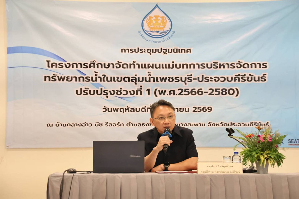 วันนี้ (2 เมษายน 2569) เวลา 09.30 น. ที่โรงแรมบ้านกลางอ่าว บีช รีสอร์ท ต.ธงชัย อ.บางสะพาน จ.ประจวบคีรีขันธ์ นายประทีป บริบูรณ์รัตน์ รองผู้ว่าราชการจังหวัดประจวบคีรีขันธ์ เป็นประธานเปิดการประชุมปฐมนิเทศ โครงการศึกษาจัดทำแผนแม่บทการบริหารจัดการทรัพยากรน้ำในเขตลุ่มน้ำเพชรบุรี-ประจวบคีรีขันธ์ ปรับปรุงช่วงที่ 1 (พ.ศ. 2566-2580) จัดโดยสำนักงานทรัพยากรน้ำแห่งชาติ (สทนช.) มี นายธันยา จรูญสมาธิศักดิ์ ผู้อำนวยการกลุ่มประสานงานลุ่มน้ำเพชรบุรี-ประจวบคีรีขันธ์ สำนักงานทรัพยากรน้ำแห่งชาติ ภาค 2 กล่าววัตถุประสงค์การจัดโครงการ และมี อรรถพลชำนาญเวชกิจผู้จัดการโครงการโครงการศึกษาจัดทำโครงการศึกษาทำแผนแม่บทบริหารจัดการทรัพยากรในเขตลุ่มน้ำเพชรบุรีจังหวัประจวบคีรีขันธ์ พร้อมด้วย ผู้แทนองค์กรผู้ใช้น้ำ ส่วนราชการ องค์กรปกครองส่วนท้องถิ่นในพื้นที่ อ.ทับสะแก อ.บางสะพาน อ.บางสะพานน้อย จ.ประจวบฯ และ อ.ปะทิว จ.ชุมพร ร่วมประชุม โดยมีการประชาสัมพันธ์ชี้แจงโครงการและรับฟังความคิดเห็นจากผู้มีส่วนได้เสียทุกภาคส่วนต่อขอบเขตและแนวทางการศึกษาของโครงการ ซึ่งดำเนินการตามกระบวนการประเมินสิ่งแวดล้อมระดับยุทธศาสตร์ หรือ Strategic Environmental Assessment หรือ SEA ที่มีการคำนึงถึงมิติด้านเศรษฐกิจ สังคม สิ่งแวดล้อมที่เชื่อมโยงกับทรัพยากรน้ำ เพื่อกำหนดทิศทางการพัฒนาและการบริหารทรัพยากรน้ำในเขตลุ่มน้ำ ผ่านกระบวนการรับฟังความคิดเห็นจากผู้มีส่วนได้เสีย นำไปสู่การกำหนดค่าเป้าหมาย ตัวชี้วัด กลยุทธ์ และแผนงานที่สอดคล้องกับสภาพปัญหาความต้องการและทิศทางการพัฒนาเชิงพื้นที่ของลุ่มน้ำ ให้หน่วยงานและองค์กรปกครองส่วนท้องถิ่นใช้เป็นกรอบในการจัดทำแผนปฏิบัติการลุ่มน้ำในเขตลุ่มน้ำ