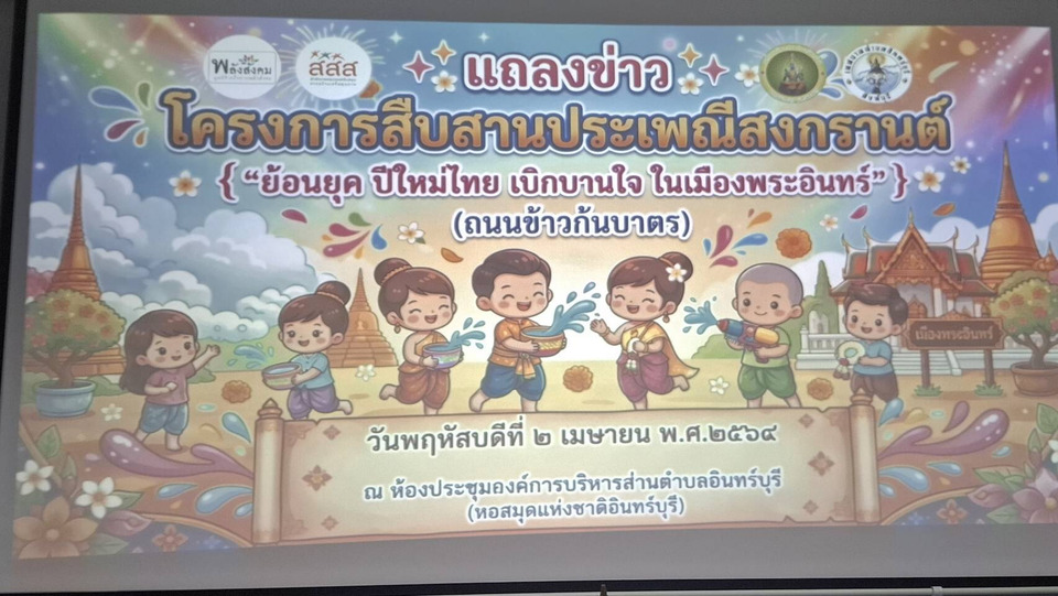 วันที่ 2 เมษายน 2569 เวลา 10.30 น. ณ ห้องประชุมองค์การบริหารส่วนตำบลอินทร์บุรี (หอสมุดแห่งชาติอินทร์บุรี) นายปกาศิต วิเศษคามิน นายกองค์การบริหารส่วนตำบลอินทร์บุรี แถลงข่าวเตรียมจัดงานสืบสานประเพณีสงกรานต์สุดยิ่งใหญ่ ภายใต้ชื่อ“ย้อนยุค ปีใหม่ไทย เบิกบานใจ ในเมืองพระอินทร์ (ถนนข้าวก้นบาตร)”โดยชูเอกลักษณ์ “ถนนตระกูลข้าว” หนึ่งใน Soft Power สำคัญของไทย ที่นำวัฒนธรรมมาสร้างสีสัน ลดความเสี่ยงอุบัติเหตุช่วงสงกรานต์ พร้อมผลักดันการท่องเที่ยวเชิงวัฒนธรรมของอำเภออินทร์บุรีให้คึกคัก