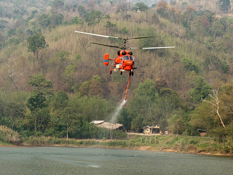 โดยสรุปผลการปฏิบัติการทิ้งน้ำดับไฟป่าเพื่อแก้ไขปัญหาไฟป่า หมอกควัน และฝุ่นละอองขนาดเล็ก PM 2.5 ในพื้นที่ 17 จังหวัดภาคเหนือในวันนี้ เฮลิคอปเตอร์ป้องกันและบรรเทาสาธารณภัย KA-32 พร้อมชุดปฏิบัติการทางอากาศ ขึ้นบินทิ้งน้ำดับไฟป่า บริเวณอำเภอดอยละเก็ด และอำเภอสะเมิง จังหวัดเชียงใหม่รวม 10 เที่ยวบิน ปริมาณน้ำทั้งสิ้น 30,000 ลิตร////