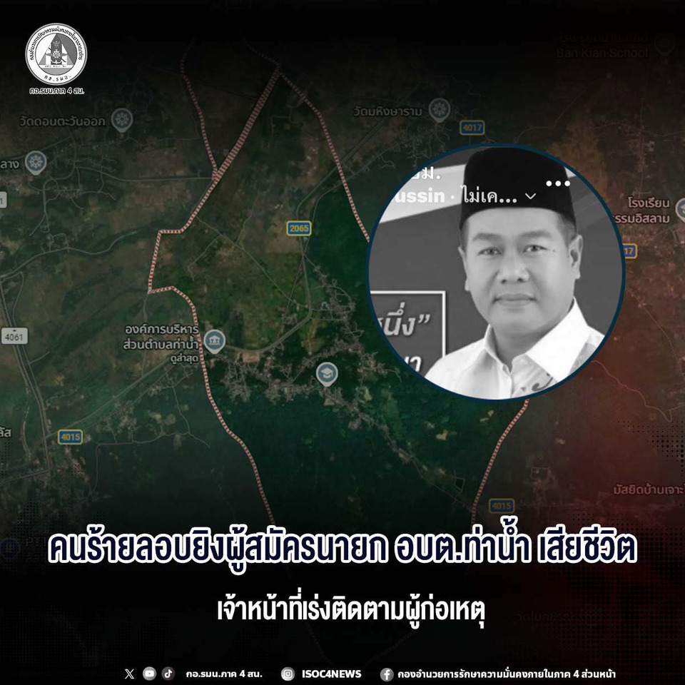 #ปัตตานี #อบตท่าน้ำ #ลอบยิง #มะนาเซลอกอ #ตำรวจ #ความมั่นคง #สืบสวน #ผู้สมัครนายก #กอรมน #ความคืบหน้าคดี #อาชญากรรม #การลอบยิง #กฎหมาย #การสืบสวน