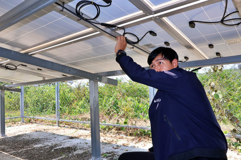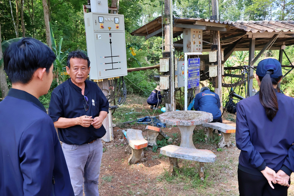 นายศิวกร อุทาทิพย์ นายช่างเทคนิคชำนาญงาน พร้อมเจ้าหน้าที่สำนักงานพลังงานจังหวัดจันทบุรี เข้าตรวจสอบความพร้อมระบบผลิตไฟฟ้าโซลาร์เซลล์บริเวณฝายคลองปึก หมู่ 7 ตำบลวังสรรพรส เพื่อช่วยเกษตรกรเจ้าของสวนทุเรียนกว่า 600 ไร่ รับมือสถานการณ์ฝนทิ้งช่วง ซึ่งปัจจุบันระบบสามารถทำงานต่อเนื่องได้วันละ 10 ชั่วโมงเต็มประสิทธิภาพ