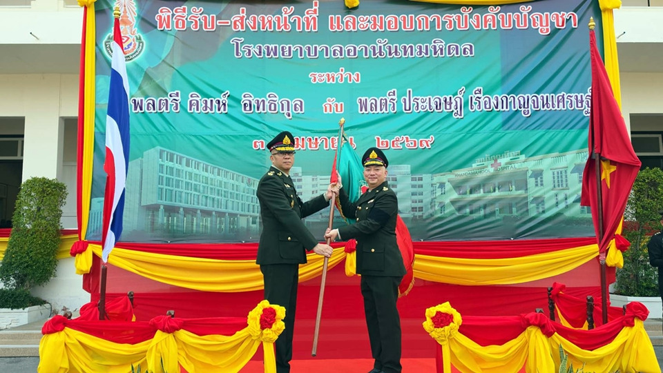 วันที่ 3 เม.ย.69 ที่ตึกอำนวยการโรงพยาบาลอานันทมหิดล กรมแพทย์ทหารบก ต.เขาสามยอด อ.เมือง จ.ลพบุรี พลตรี พลตรี คิมห์ อิทธิกุล รองเจ้ากรมแพทย์ทหารบก ในฐานะอดีตผู้อำนวยการโรงพยาบาลอานันทมหิดล ท่านเดิม ได้กระทำพิธีลงนามในเอกาสาร เพื่อส่งมอบการบังคับบัญชา และมอบธงประจำหน่วยให้แก่ พลตรี ประเจษฎ์ เรืองกาญจนเศรษฐ์ ผู้อำนวยการกองการศึกษา วิทยาลัยแพทยศาสตร์พระมงกุฎเกล้า ตามที่มีพระบรมราชโองการโปรดเกล้า ให้รับราชการในตำแหน่ง ผู้อำนวยการโรงพยาบาลอานันทมหิดล ท่านใหม่ อย่างเป็นทางการ โดยมี ข้าราชการ หน่วยขึ้นตรง หน่วยฝากการบังคับบัญชา และคณะแพทย์ในสังกัด โรงพยาบาลอานันทมหิดล กรมแพทย์ทหารบก เข้าร่วมพิธี อย่างสมเกียรติ