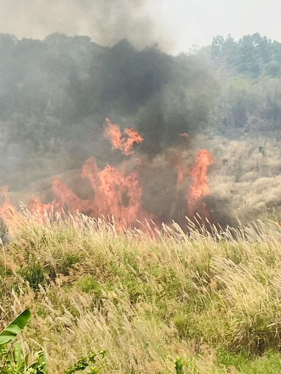 อย่างไรก็ตาม ขณะเข้าปฏิบัติหน้าที่ได้เกิดลมกระโชกแรง ทำให้เปลวไฟลุกลามอย่างรวดเร็วเป็นวงกว้าง ส่งผลให้เจ้าหน้าที่อาสาสมัครบางส่วนต้องเร่งถอนกำลังออกจากพื้นที่อย่างเร่งด่วน แต่ไม่สามารถนำรถจักรยานยนต์ออกมาได้ทัน ถูกไฟไหม้เสียหายจำนวน 3 คัน