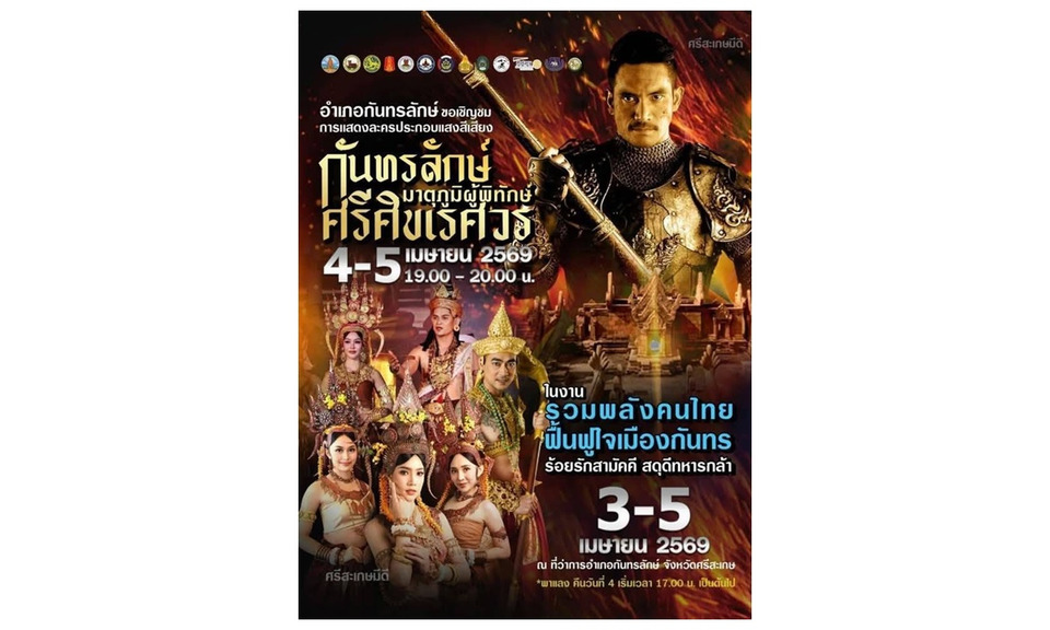 นายสุริยา บุตรจินดา รองผู้ว่าราชการจังหวัดศรีสะเกษกล่าวว่า นอกจากมีการแข่งขันวิ่ง "เมืองกันทร์ RUN FOR HERO" คืนวันที่ 4-5 เมษายน 2569 เวลา 19.00-20.00 น. ยังมีการแสดงละครประกอบแสงสีเสียง กันทรลักษ์ มาตุภูมิผู้พิทักษ์ ศรีศิขเรศวร ขอเชิญประชาชนไปร่วมชมการแสดงตามวันเวลาดังกล่าว.