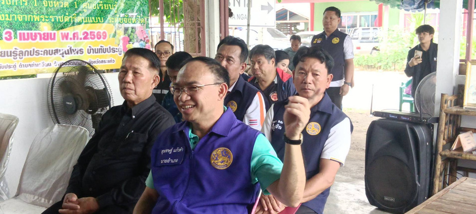 นายสุเทพ ชัยวัฒน์ ปลัดจังหวัดสระแก้ว เป็นประธานคณะกรรมการตรวจประเมินผลงานศูนย์เรียนรู้โครงการอันเนื่องมาจากพระราชดำริต้นแบบ ระดับจังหวัด ประจำปีงบประมาณ พ.ศ. 2569 พร้อมด้วยคณะกรรมการ ลงพื้นที่ ณ แหล่งเรียนรู้ลูกประคบสมุนไพร บ้านทับประดู่ หมู่ที่ 10 ตำบลท่าเกวียน อำเภอวัฒนานคร จังหวัดสระแก้ว ของนางกองสิน ทองคำภา ประธาน แหล่งเรียนรู้ ฯ และกลุ่มวิสาหกิจชุมชน อสม.หมู่ 10 บ้านทับประดู่ โดยมีนายสุรเชษฐ์ แก้วคำ นายอำเภอวัฒนานคร กล่าวต้อนรับคณะกรรมการ และแนะนำส่วนราชการระดับอำเภอวัฒนานคร และมีส่วนราชการระดับอำเภอวัฒนานคร อาจารย์จากมหาวิทยาลัยราชภัฏวไลยอลงกรณ์ จังหวัดสระแก้ว ผู้บริหารท้องถิ่นองค์การบริหารส่วนตำบลท่าเกวียน กำนัน ผู้ใหญ่บ้าน ภาคประชาชนในพื้นที่ร่วมงาน ผลการปฏิบัติเป็นไปด้วยความเรียบร้อย
