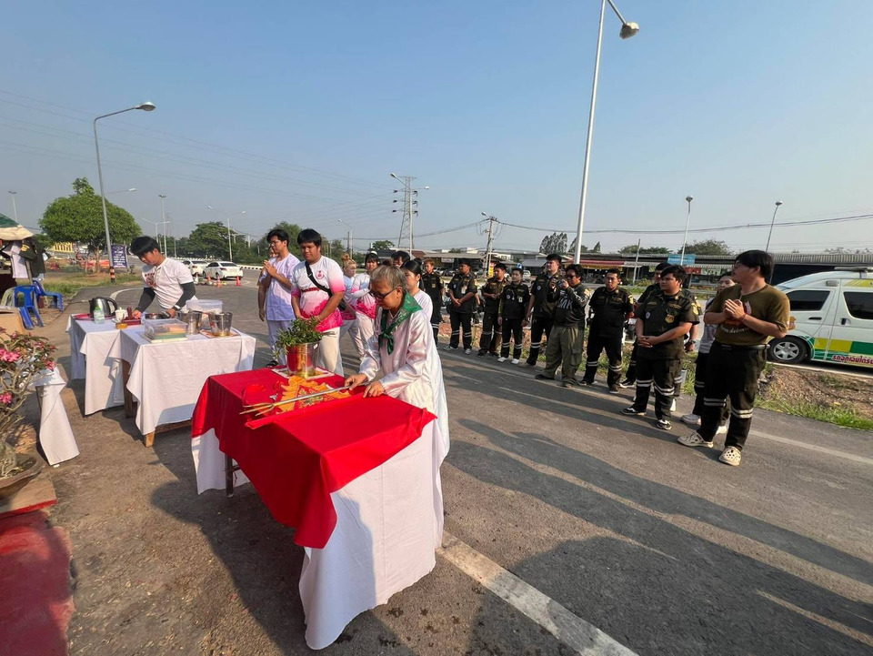 นายชยพลกล่าวอีกว่าในส่วนของการเตรียมความพร้อมให้บริการและช่วยเหลือพี่น้องประชาชน ในเทศกาลสงกรานต์ที่จะถึงนั้น ทางสมาคมได้ประกอบพิธีบวงสรวงศาลพระภูมิเจ้าที่ เพื่อสร้างขวัญกำลังใจให้กับอาสากู้ภัยทุกคน ให้มีความพร้อมทั้งร่างกาย จิตใจ และอุปกรณ์ช่วยเหลือชีวิต กรณีประสบอุบัติเหตุ รวมทั้งสาธารณภัยอื่นๆ โดยในวันนี้ยังได้ร่วมทำบุญ รับมอบหีบศพกับครอบครัว ดร.เกรียงไกร ภูมิเหล่าแจ้ง นายกเทศมนตรีตำบลยางตลาด ทั้งนี้ เพื่อการมีส่วนร่วมในการขับเคลื่อนกองทุนช่วยเหลือครอบครัวยากจนของเทศบาลตำบลยางตลาด และดูแลสังคมด้วยจิตอาสา โดยไม่หวังสิ่งตอบแทน ทั้งนี้ พี่น้องประชาชน ติดต่อขอรับหีบศพฟรี หรือแจ้งเหตุ สามารถโทรเข้ามาที่หมายเลขโทรศัพท์ 081-6624423