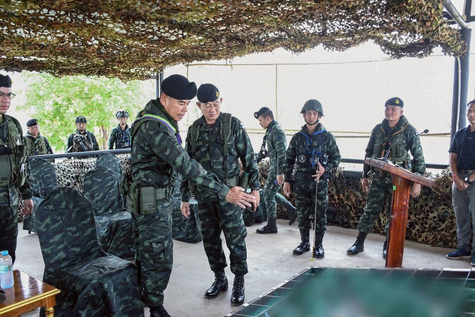 ผู้บัญชาการกองกำลังนเรศวร ตรวจเยี่ยมการปฏิบัติงาน กองกำลังป้องกันชายแดน หน่วยเฉพาะกิจราชมนู และหน่วยเฉพาะกิจกรมทหารพรานที่ 35. ชายแดน ไทย-เมียนมา