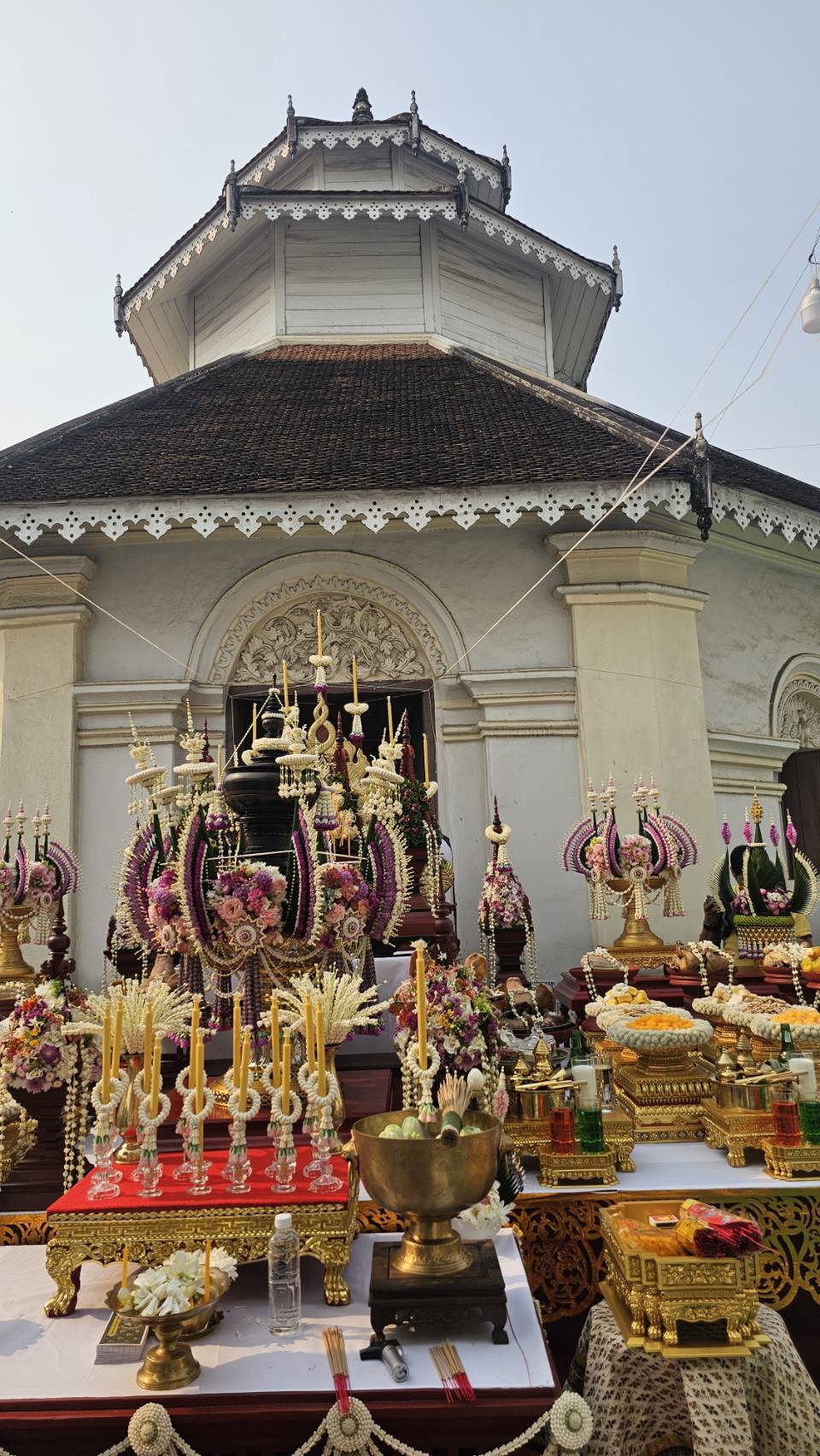 วันที่ 6 เมษายน 2569 เวลา 09.09 น.ที่บริเวณด้านหน้าพระมหาธาตุเจดีย์ทรงแปดเหลี่ยม วัดเชียงยืน เดชเมืองเชียงใหม่ อำเภอเมือง จังหวัดเชียงใหม่ อาจาร์ยวารินทร์ บัววิรัตน์เลิศ ประธานมูลนิธิอาจารย์วารินทร์ บัววิรัตน์เลิศ มูลนิธิข่วงพระเจ้าล้านนา ประกอบพิธีบวงสรวงเทพยดา อารักษ์ และสิ่งศักดิ์สิทธิ์ ตามคติความเชื่อของล้านนา เพื่อความเป็นสิริมงคลและความร่มเย็นเป็นสุขแก่ชุมชนและบ้านเมือง โดยมีผู้ทรงคุณวุฒิ คณะกรรมการวัด และผู้เกี่ยวข้องเข้าร่วมพิธี ก่อนที่ในภาคค่ำตั้งแต่เวลา 17.00 น. วัดเชียงยืนจัดพิธีสวดมนต์บท “อุปปาตะสันติ” หรือ “มหาสันติงหลวง (ฉบับแปล)” ซึ่งเป็นบทสวดมนต์โบราณสำคัญในพระพุทธศาสนา ทั้งยังเป็นการสวดฉบับแปลเป็นไทย โดยพระสงฆ์ - สามเณร และประชาชนทั่วไปที่ไปร่วมพิธีทั้งหมดที่ได้สวดพร้อมกัน อันแสดงออกถึงความสามัคคีและความจงรักภักดีเป็นที่ตั้ง ส่งผลบังเกิดเป็นอานุภาพแห่งพระปริตรธรรมตามที่ท่านจารึกไว้ในคัมภีร์อีกด้วย ที่สำคัญการจัดพิธีในวันนี้เป็นครั้งแรกในจังหวัดเชียงใหม่อีกด้วย