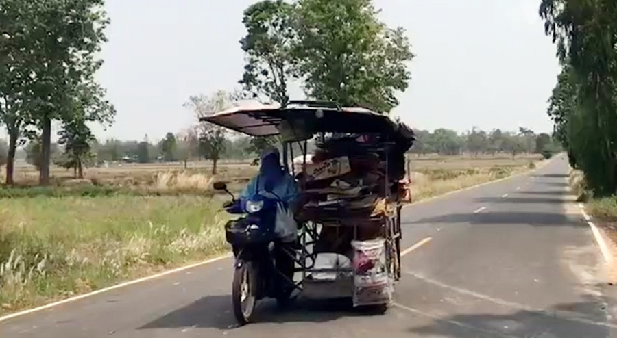 หญิงวัย 54 ปี ชาวสุรินทร์ พลิกวิกฤตราคาน้ำมัน หันใช้รถพ่วงข้างตระเวนรับซื้อของเก่า สร้างรายได้กว่า 2,000 บาทต่อรอบ ช่วยพยุงครอบครัวในยุคเศรษฐกิจฝืดเคือง