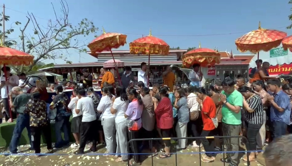 วัดพระลอย สุพรรณบุรี จัดพิธีพุธาภิเษกพ่อขุนช้างมหาเศรษฐี สาธุชนร่วมงานคึกคัก แห่ส่องเลขหางประทัด 142-74 พร้อมต่อเส้นวาสนา อาบน้ำมนต์เสริมโชคลาภ