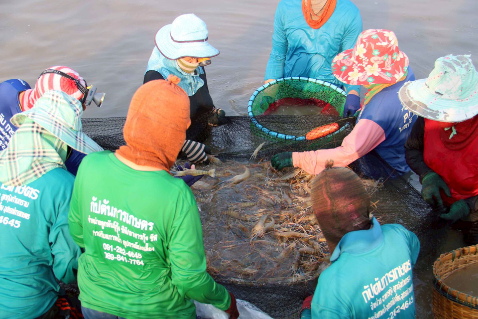 นายณัฐวุฒิ กล่าวเพิ่มเติมว่า ขณะเดียวกันในส่วนพ่อค้าคนกลางก็มีการปรับตัว 2 รูปแบบ คือลดจำนวนเที่ยวลงเพื่อประหยัดน้ำมัน เช่น จากที่เคยนำส่งเที่ยวละ 100 กก. ก็ขอให้แหล่งรับซื้อเพิ่มเป็น 200-300 กก. หรือพ่อค้าคนกลาง 4 คน ที่มีแหล่งรับซื้อกุ้งขาประจำของแต่ละคน ตามเส้นทางเดียวกันหรือใกล้เคียงกัน จากที่เคยต่างคนต่างขับรถของตนไปส่งกุ้งคนละ 100-200 กก. ก็มีการนัดหมายส่งกุ้งวันเดียวกันและขนส่งด้วยรถคันเดียวกัน “แบบทางเดียวกันไปด้วยกัน” โดยมีการแชร์ค่าขนส่ง เพื่อประหยัดน้ำมัน