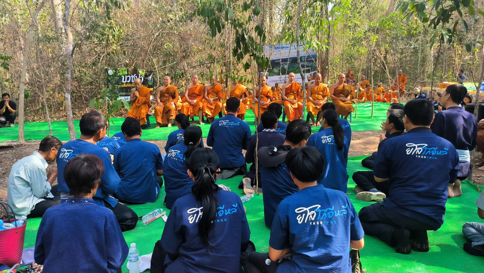 จังหวัดยโสธรทำพิธีบวชป่าสร้างพื้นที่ศักดิ์สิทธิ์ของชุมชนนำผ้าเหลืองห่มไพร หัวใจ BCG เลิงนกทารวมพลังเปลี่ยนศรัทธาเป็นคาร์บอนเครดิต สร้างรายได้ยั่งยืนคืนสู่ชุมชนบ้านศรีชุมพร