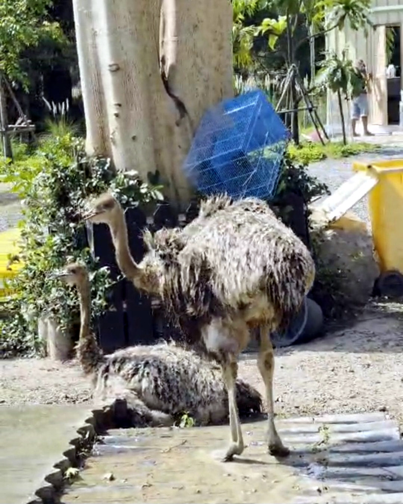 นกกระจอกเทศวัย 5 เดือน วิ่งเตลิดกว่า 10 กม. บนถนนหมายเลข 36 จ.ชลบุรี ขณะตามรถโม่ปูน ชาวบ้านช่วยจับปลอดภัย เจ้าของคาเฟ่แมวขอบคุณใจดี เผยน้องเชื่องและปกติไม่วิ่งออกถนน