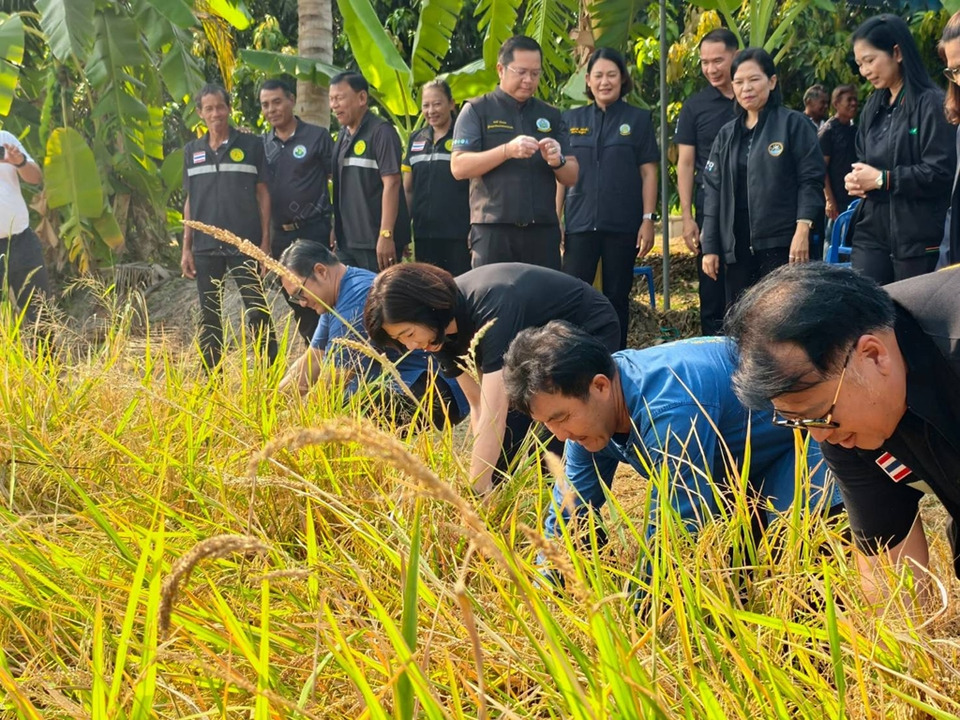 เกษตรอ่างทอง จัดกิจกรรมเกี่ยวข้าวและติดตามโครงการ “อ่างทอง ทำนาวิถีใหม่ ไร้ข้าวดีด ทำนาดี ปีละ 2 ครั้ง” ศูนย์ข้าวชุมชนบ้านโคบึงโชว์ผลผลิตเพิ่มขึ้น ใช้สารชีวภัณฑ์แทนการเผาฟาง ลดต้นทุนและมลพิษ พร้อมต่อยอดปลูกข้าวคุณภาพสูงเพื่อเกษตรกร