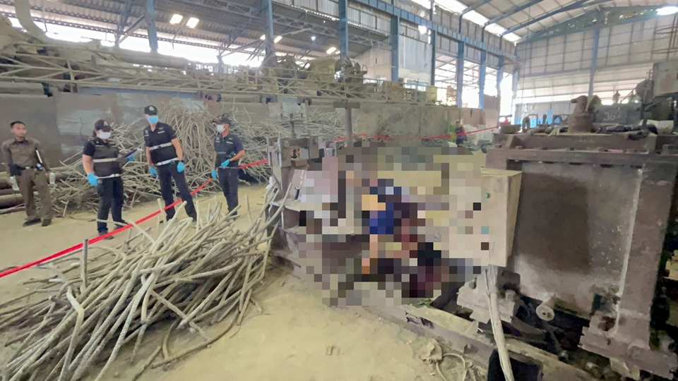 เมื่อเวลา 10.30 น. วันที่ 8 เม.ย.69 พ.ต.ท.ขวัญข้าว อินาวัง สารวัตรสอบสวน สภ.บางปลาม้า ได้รับแจ้งเหตุมีชายถูกเครื่องยืดเหล็กหนีบเสียชีวิตภายในโรงงานเหล็ก ในพื้นที่ หมู่ 5 ตำบลบางปลาม้า อำเภอบางปลาม้า จังหวัดสุพรรณบุรี จึงได้เดินทางไปตรวจสอบเหตุพร้อมด้วยเจ้าหน้าที่ตำรวจพิสูจน์หลักฐาน แพทย์เวรโรงพยาบาลบางปลาม้าเจ้าหน้าที่กู้ภัยเสมอกันสุพรรณบุรี ที่เกิดเหตุพบร่างนายบรรณ์ลัง (ขอสงวนนามสกุล) อายุ 53 ปี อยู่หมู่ที่ 9 ต.รัตนวาปี อ.รัตนวาปี จ.หนองคาย สภาพศพถูกเครื่อง ยืดเหล็กรีดติดคาแท่นเครื่อง ไส้ทะลักเสื้อผ้าม้วนติดอยู่กับเครื่องรีดเหล็ก สภาพศพสยดสยอง