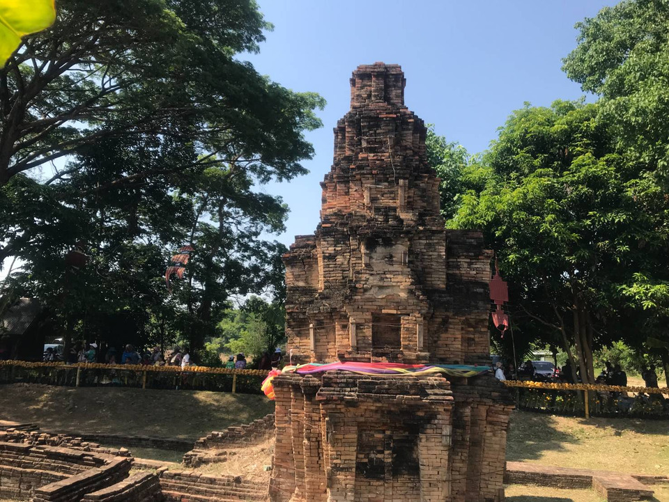 สำหรับ “ปราสาทตระเปียงเตีย” ถือเป็นโบราณสถานสำคัญของชุมชน มีลักษณะเป็นปรางค์ก่ออิฐ หันหน้าไปทางทิศตะวันออก ฐานเป็นรูปสี่เหลี่ยมจัตุรัสซ้อนกัน 4 ชั้น ส่วนยอดเป็นรูปดอกบัวตูม อันเป็นเอกลักษณ์ทางสถาปัตยกรรม โดยนักวิชาการสันนิษฐานว่าเป็นศิลปกรรมแบบลาว สร้างในช่วงปลายกรุงศรีอยุธยา หรือต้นกรุงรัตนโกสินทร์ ชื่อ “ตระเปียงเตีย” มาจากภาษาเขมรถิ่น โดยคำว่า “ตระเปียง” หมายถึง แหล่งน้ำ หรือหนอง ส่วน “เตีย” แปลว่า เป็ด รวมความหมายคือ “หนองเป็ด” ซึ่งสะท้อนถึงอดีตที่เคยเป็นแหล่งอาศัยของนกเป็ดน้ำ