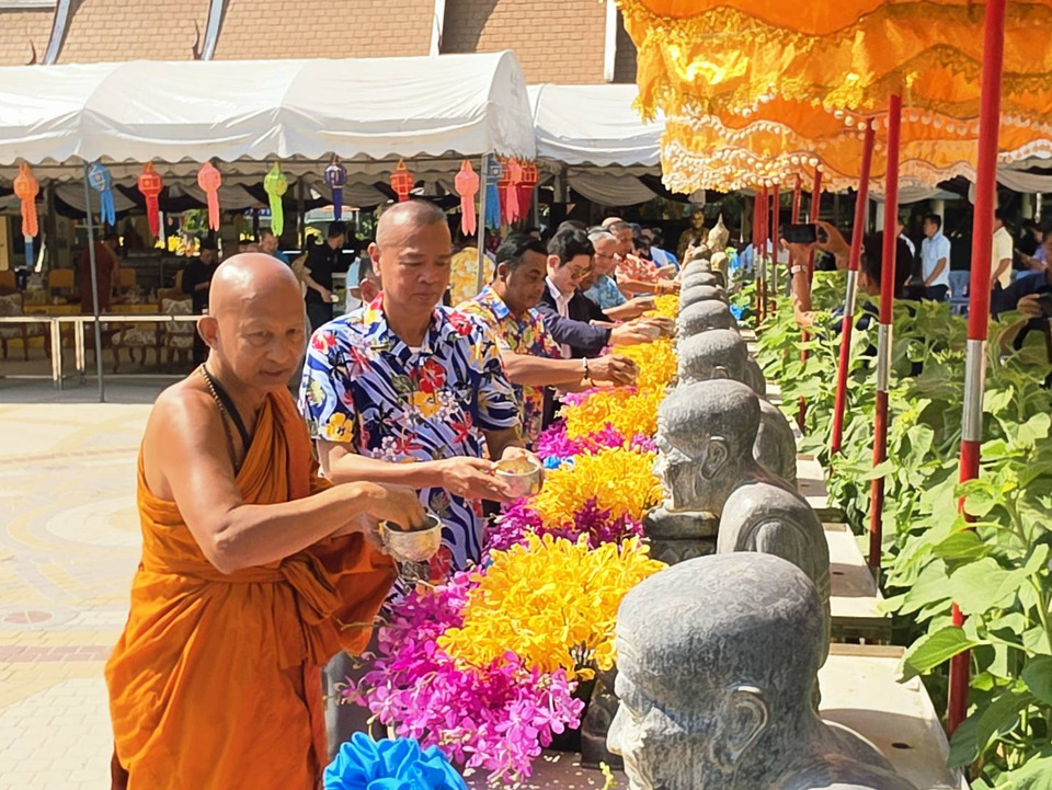 เมื่อวันที่ 9 เม.ย.69 ที่วัดห้วยมงคล ต.ทับใต้ อ.หัวหิน จ.ประจวบฯ พระพิศาลสิทธิคุณ หรือท่านเจ้าคุณไพโรจน์ ปภัสสโร เจ้าอาวาสวัดห้วยมงคล ประธานฝ่ายสงฆ์ นายอิษฎา เสาวรส ผู้อำนวยการการท่องเที่ยวแห่งประเทศไทย (ททท.) สำนักงานประจวบฯ ประธานฝ่ายฆราวาส ในพิธีบวงสรวงและกดปุ่มสรงน้ำหลวงพ่อทวดองค์ใหญ่ พระนามาภิไธยย่อ สก เปิดงานสงกรานต์ วันขึ้นปีใหม่ของไทย ประจำปี 2569 โดยมี พล.ต.ท.ดำรงศักดิ์ ทองงามตระกูล นายกสมาคมกีฬาหัวหิน นายสรรภพ อึ้งรัศมี รองนายกเทศมนตรีนครหัวหิน นายเจนวิท ผลิศักดิ์ สาธาณณสุขอำเภอหัวหิน นายจำนงค์ บุตรสงค์ อุปนายกนายกสมาคมธุรกิจท่องเที่ยวหัวหิน/ชะอำ พ.อ.นพดล ทวีไทย ผช.ผอ.รพ.ค่ายธนะรัชต์ หัวหน้าส่วนราชการ องค์กรปกครองส่วนท้องถิ่น ประชาชนและนักท่องเที่ยวทั้งชาวไทยและต่างชาติร่วมสรงน้ำขอพรหลวงพ่อทวด และเจ้าอาวาสวัดห้วยมงคล เพื่อความเป็นสิริมงคลแก่ตนเองและครอบครัวช่วงเทศกาลปีใหม่ไทยอย่างต่อเนื่องท่ามกลางอากาศแจ่มใส โดยทางวัดจะเปิดให้ประชาชนนักท่องเที่ยวได้สรงน้ำหลวงพ่อทวดองค์ใหญ่จนถึงสิ้นเดือน เม.ย.นี้