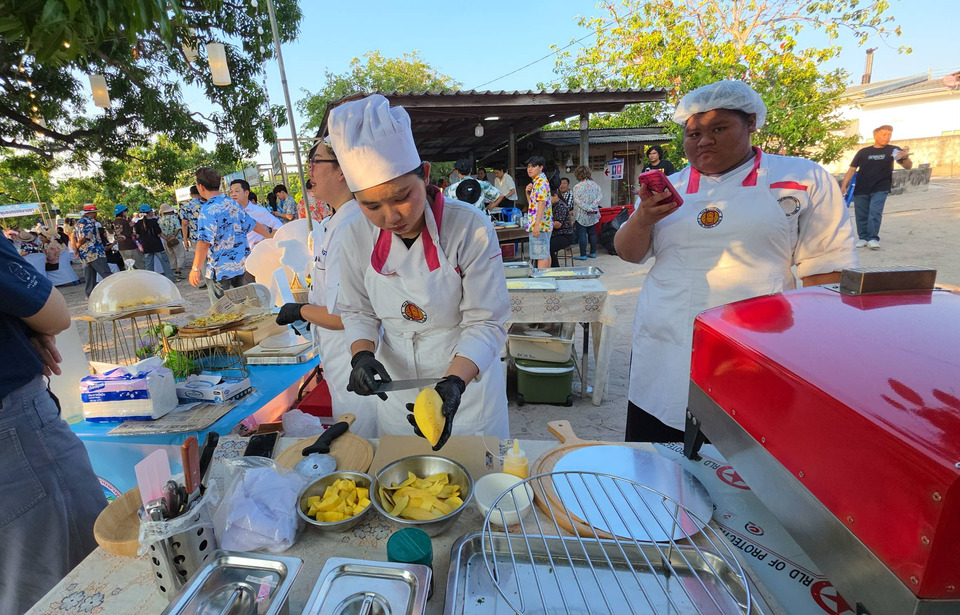 เมื่อวันที่ 10 เม.ย.69 ผู้สื่อข่าวรายงานว่า นายกิตติพงค์ อุตตมะเวทิน ผอ.วิทยาลัยเทคนิคระยอง นำครู และนักศึกษาแผนกวิชาอาหารและโภชนาการ ภายใต้ศูนย์ Soft power ด้านอาหารแผนกวิชาอาหารและโภชนาการ วิทยาลัยเทคนิคระยอง ได้โชว์เมนูพิซซ่าหน้ามะม่วง ซึ่งเป็นช่วงที่ฤดูมะม่วงออกสู่ตลาดแล้ว จัดขึ้นในงาน "มะม่วงพื้นทราย@มาบตาพุด Festival ครั้งที่ 1" ซึ่งจัดขึ้นโดยเทศบาลนครมาบตาพุด และเกษตรกรชาวสวนมะม่วงพื้นทรายในพื้นที่ บริเวณสวนลุงทวน เขตเทศบาลนครมาบตาพุด อ.เมืองระยอง เมื่อวันที่ 8 เม.ย.ที่ผ่านมา