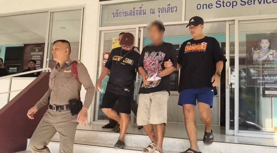 ต่อมาเวลาเดียวกัน ทางเจ้าหน้าที่ตำรวจนั้นได้นำตัวนายสุรศักดิ์ หรือแซม พ่อเลี้ยง ขึ้นรถห้องขัง แต่ก็โดนชาวบ้านปรี่เข้ามากระโดดถีบนายแซม ซึ่งทั้ง2ผู้ต้องหานั้นก็ยังโดนชาวบ้านยืนด่าสาปแช่ง พร้อมตระโกนด่าท้อ ในส่วนน.ส.เจี๊ยบนั้นกล่าวกับผู้สื่อข่าวเพียงสั้นๆว่าหนูไม่ได้ทำ ซึ่งก่อนรถจะออก ทางนายแซมได้ตระโกนออกมาจากรถว่า"เออเดี๋ยวมึงเจอกู"ซึ่งสีหน้านายแซมนั้นไม่มีท่าทีที่สลดอะไรเลย