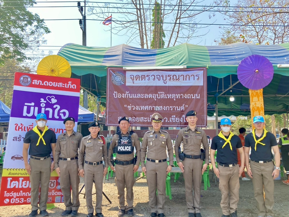 สภ.ดอยสะเก็ด จ.เชียงใหม่ร่วมพิธีเปิดจุดบริการประชาชน ในการป้องกันและลดอุบัติเหตุทางถนนช่วงเทศกาลสงกรานต์ ประจำปี 2569 ณ บริเวณหน้าสถานีตำรวจภูธรดอยสะเก็ด อำเภอดอยสะเก็ด จังหวัดเชียงใหม่